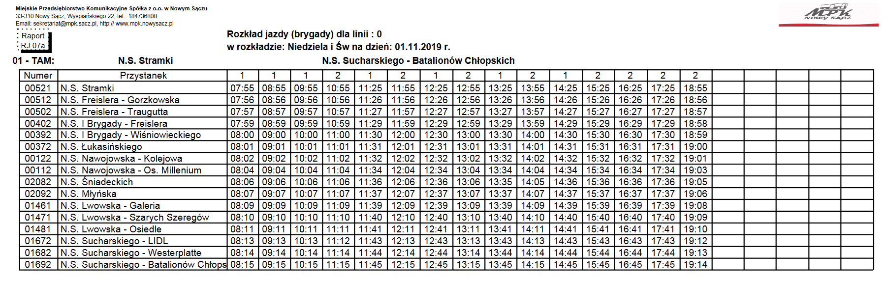 Aby ułatwić dojazd do cmentarzy w dniu Wszystkich Świętych, MPK uruchamia jak co roku linię „0” – rozkład jazdy poniżej. Pozostałe linie autobusowe kursują według niedzielnego rozkładu jazdy.