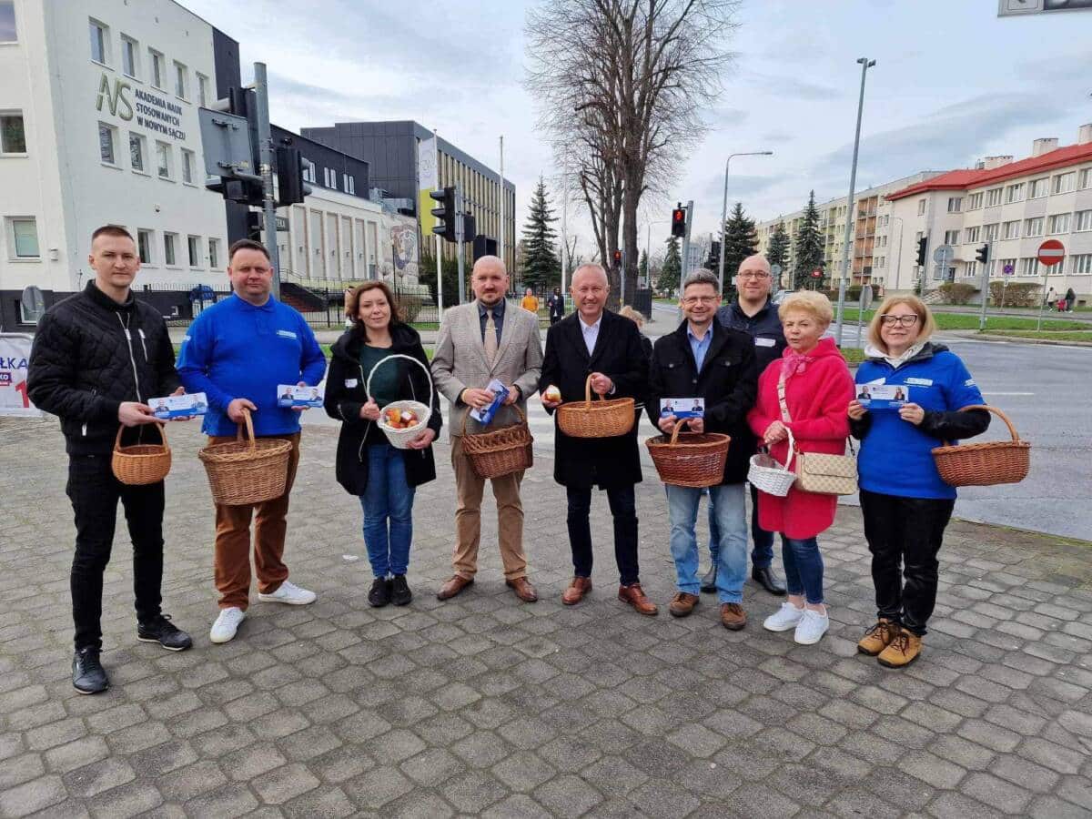 Kandydaci Koalicji Nowosądeckiej spacerowali po mieście i rozdawali przechodniom jabłka z naklejkami swojego ugrupowania.