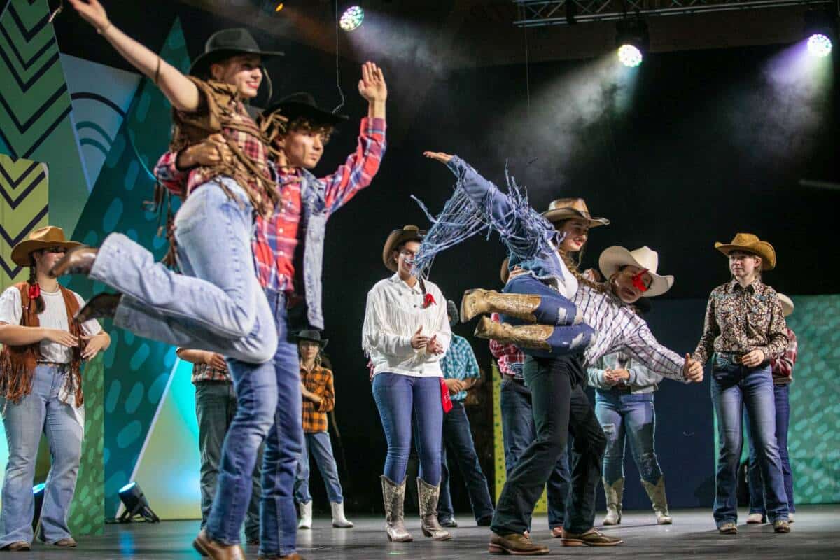 I znów przenosimy się do szalonego Teksasu. Z głośników płynie wyśpiewana prośba, by Bóg błogosławił Texas. Do tańca dołączają się kolejne osoby. Aż na całej scenie: buty na podwyższonych obcasach, dżins, kapelusze z szerokimi rondami. Wszyscy razem…