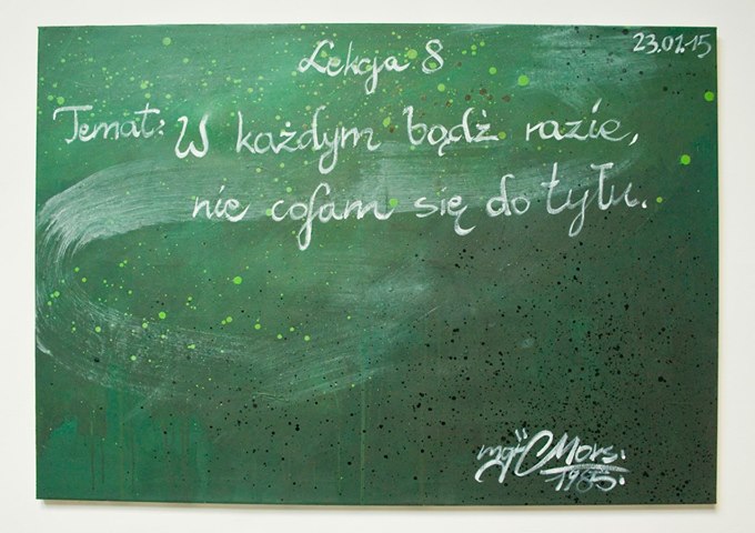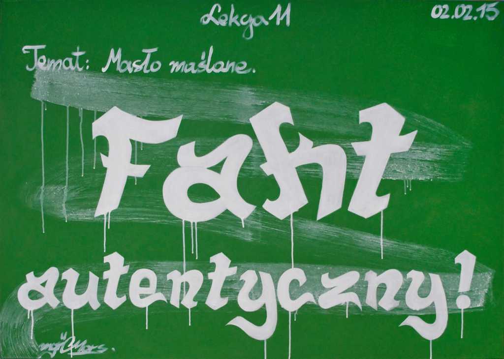 Bawiąc się słowem chce nauczyć siebie i nas myślenia o języku jakiego używamy. Lekcje, które powstają to nie graffiti, ale są inspirowane graffiti, są to napisy. Napisy zaczęły pojawiać się na początku stycznia – artysta zapowiada, że projekt potrwa cały rok.