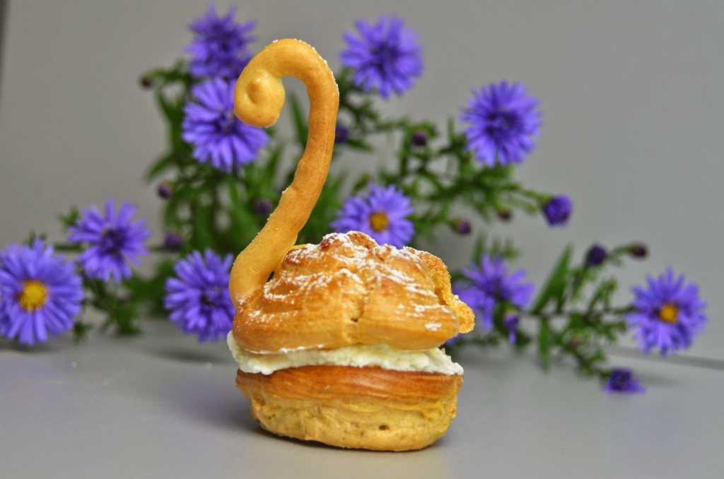 3. Piekarnik rozgrzewamy do 200C i pieczemy ciasto ok 20 minut, aż będą dobrze wypieczone i brązowe. Upieczone elementy łabędzi zsuwamy na tacę i odstawiamy do ostudzenia.