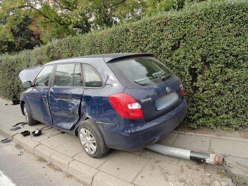 W sobotę (10 października) przed południem kierujący Audi TT po uderzeniu w samochód osobowy jadący ul. Siemiradzkiego kontynuował jazdę, ale chwilę później zatrzymał się, roztrzaskując Audi na betonowym słupie oświetlenia ulicznego na skrzyżowaniu z ul. Królowej Jadwigi.