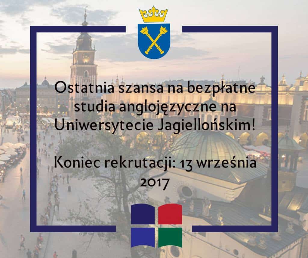Dołącz do studentów z Europy, Azji i Afryki i stań się częścią bezpłatnych studiów anglojęzycznych w samym centrum Krakowa! Zostały ostatnie wolne miejsca! Koniec rekrutacji – 13 września 2017.