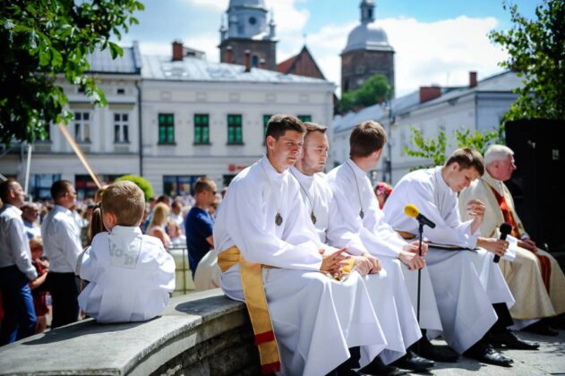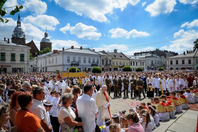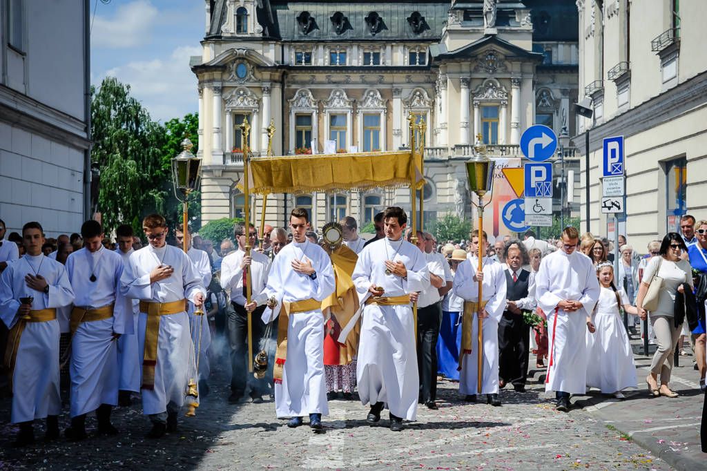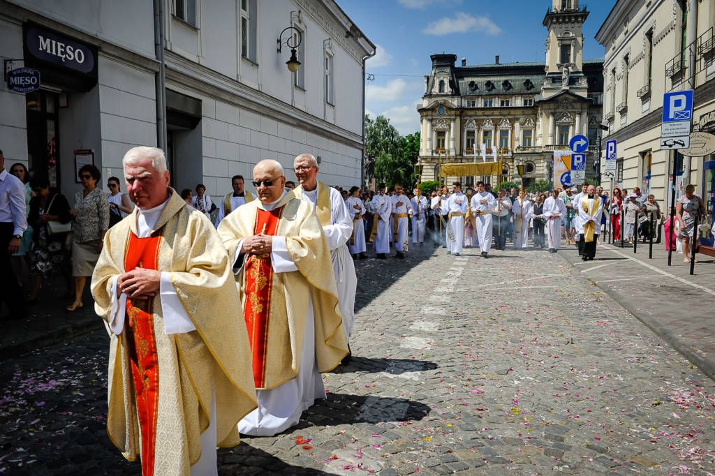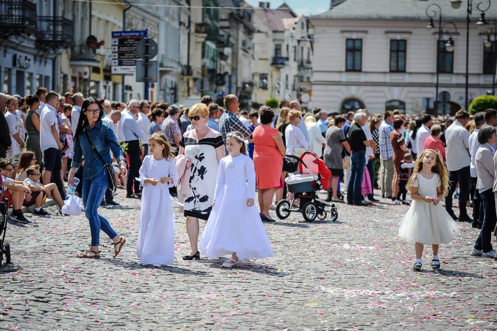 Kilka tysięcy sądeczan wzięło udział w największej w mieście procesji Bożego Ciała prowadzącej z bazyliki kolegiackiej Świętej Małgorzaty wokół Rynku Nowego Sącza.