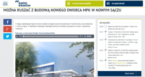 RADIO KRAKÓW "W ciągu najbliższego tygodnia ruszy budowa nowego dworca dla autobusów miejskich przy ulicy Kolejowej w Nowym Sączu. W siedzibie Miejskiego Przedsiębiorstwa Komunikacji...