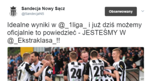 Miejski Klub Sportowy Sandecja na trzy kolejki przed zakończeniem rozgrywek, dzięki korzystnemu układowi w tabeli, zapewnił sobie awans do Ekstraklasy - najwyższego szczebla piłkarskich...