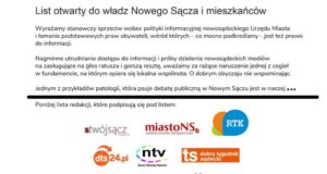 List otwarty sądeckich redakcji do władz Nowego Sącza i mieszkańców