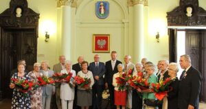 Życzenia dalszych lat wspólnego pożycia małżeńskiego w zdrowiu i pomyślności przekazał świętującym Szmaragdowe i Złote Gody parom małżeńskim Prezydent Nowego Sącza Ryszard Nowak.