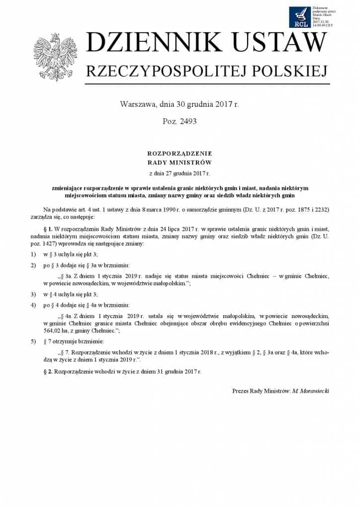 24 lipca 2017 ukazało się Rozporządzenie Rady Ministrów „w sprawie ustalenia granic niektórych gmin i miast, nadania niektórym miejscowościom statusu miasta, zmiany nazwy gminy oraz siedzib władz niektórych gmin”. Mówiło m.in. o tym, że „Chełmiec – w gminie Chełmiec, w powiecie nowosądeckim, w województwie małopolskim” – od 1 stycznia przyszłego roku będzie miał status miasta z obszarem o powierzchni 564 ha wydzielonym z terenu gminy Chełmiec (tutaj więcej o tym).