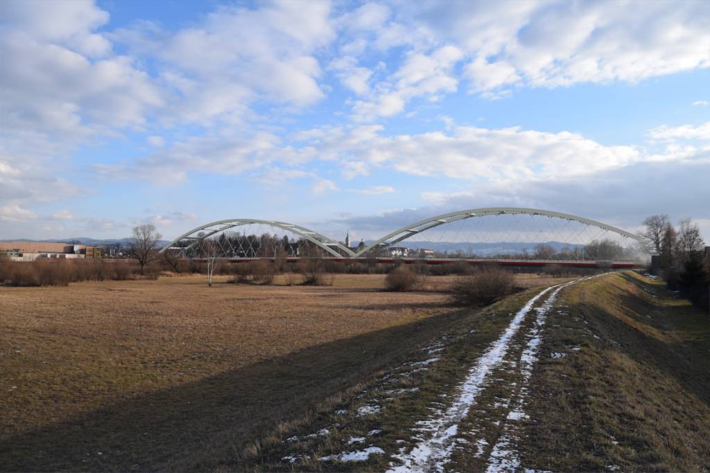 Ze względu na lokalizację mostu w pobliżu starówki, projektanci z wyłonionej w przetargu firmy Trasal z Rzeszowa mieli za zadanie „wtopić” obiekt w otoczenie i krajobraz. Dlatego zastosowano właśnie m.in. siatkowy układ wieszaków w stylu „network arch”, jasny kolor konstrukcji łuku i wieszaków, bariery drogowe o prowadnicy rurowej oraz balustrady z wypełnieniem siatkowym.