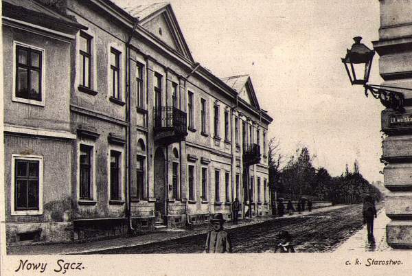 Kamienica na rogu ulicy Jagiellońskiej i Wolskiej. A Wolska to obecna Kościuszki, a „przestanek” to dzisiejszy, zapomniany „Nowy Sącz Miasto”…