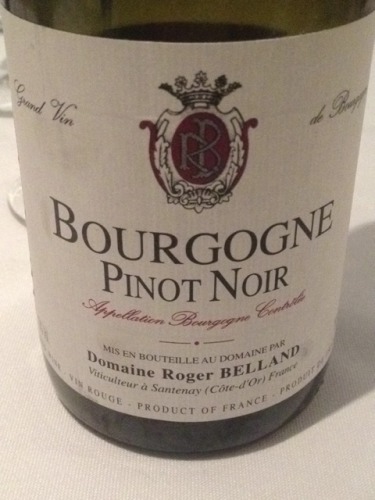Pierwsze wino, to podstawowy Pinot Noir od wiodącego producenta z Santenay Rogera Bellanda. Kiedyś Anglicy złośliwie powiadali, że „życie jest zbyt krótkie aby pić wino z Santennay”. To bzdura, wina z Santenay są bardzo dobre, szczególnie te zrobione przez ważnej postaci Santenay jaką jest Belland. W ofercie posiada wino, które pochodzi z innych regionów Burgundii: z Pomard, Motrachet, Volnay. To które piliśmy pochodzi z Santanay, wioski, na skraju Cote de Beuane. To jest podstawowe Pinot Noir. Rocznik 2011.