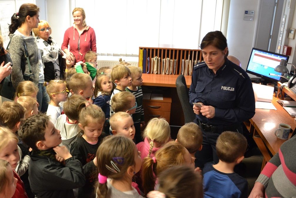 Przygoda na komendzie zakończyła się spotkaniem z nadkom. Bogusławem Żytkowiczem z Wydziału Ruchu Drogowego, który przypomniał dzieciom oraz ich opiekunom zasady bezpiecznego poruszania się po jezdni. Mali goście zobaczyli alkomat oraz przyrząd do pomiaru prędkości.