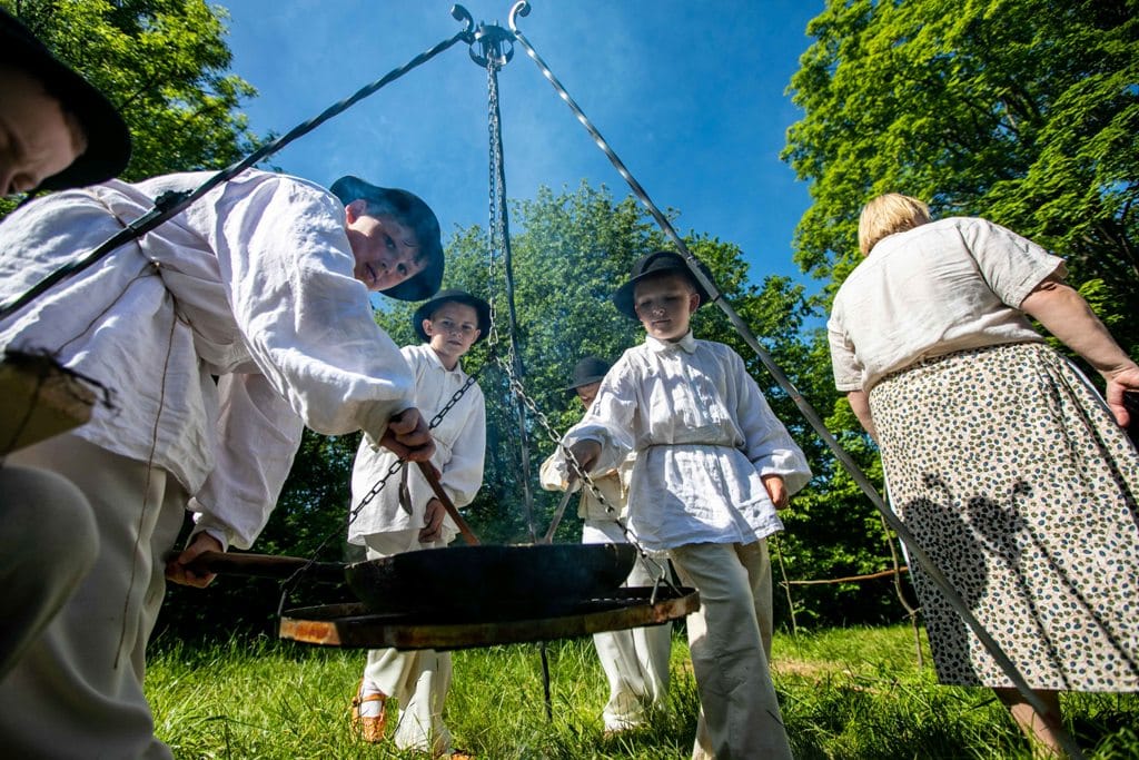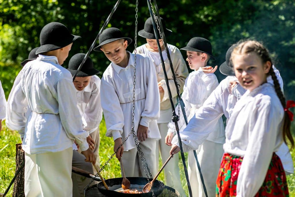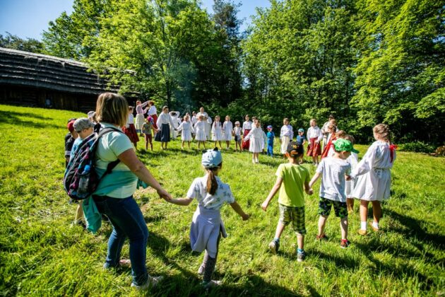 Były opowieści o znaczeniu ziół, nauka gry na listku, pokaz instrumentów pasterskich, przygotowanie zielnika, wyrób kwiatków i wianków z bibuły, kręcenie powrozów. Dzieci mogły także skorzystać z edukacyjnej ścieżki etnobotanicznej, której prezentacja połączona była z grą terenową. Można było także zwiedzać ekspozycję skansenu, oglądać wystawę „Rękawice furmańskie. Niematerialne dziedzictwo regionu” oraz wziąć udział w konkursach i zabaw zręcznościowych.