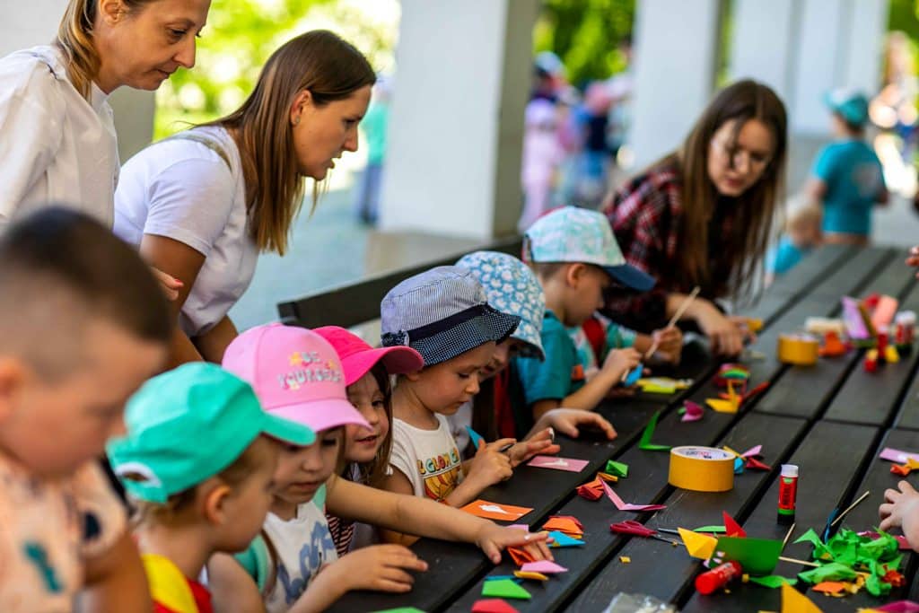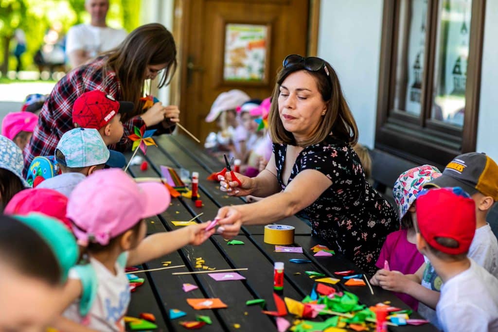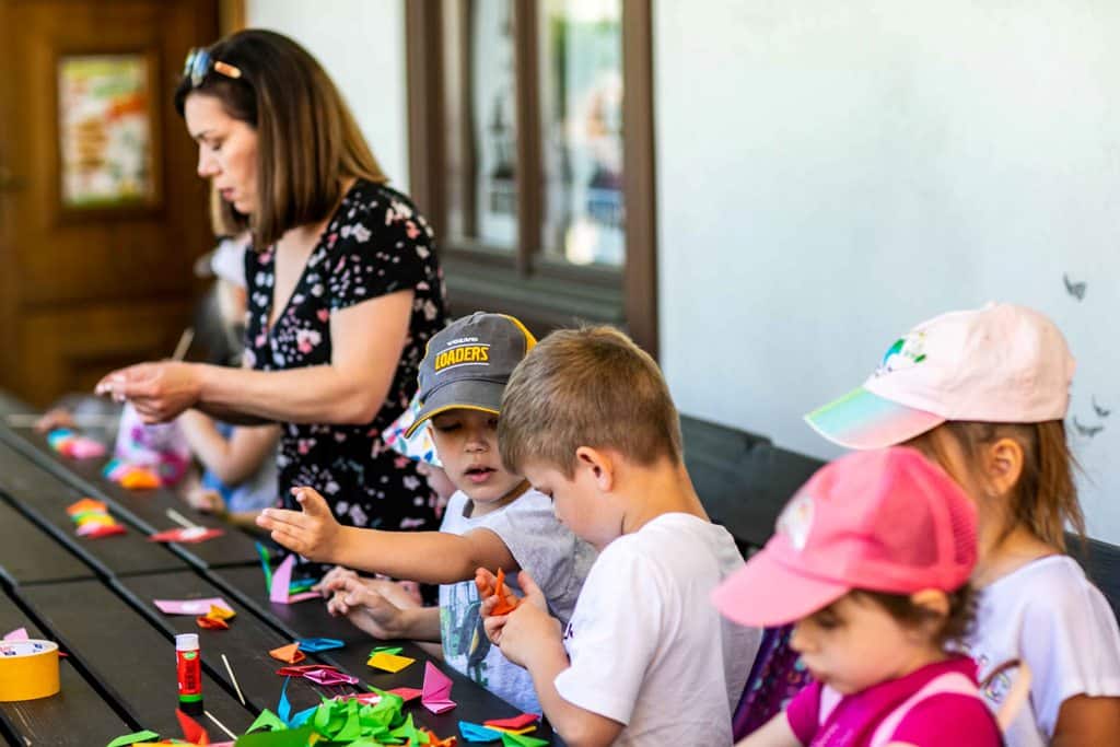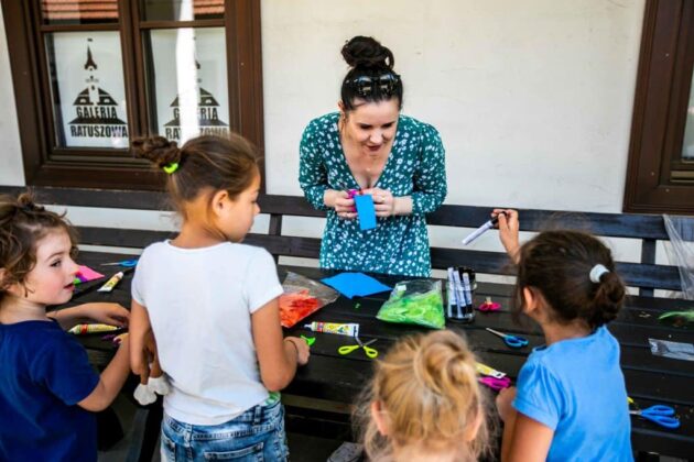 Dzieci pod opieką muzealników miały okazję w ramach warsztatów artystycznych wykonywać makramowe listki, origami, realizować własne pomysły podczas warsztatów z ceramiki. Mogły skorzystać z dmuchańca, wziąć udział w grach galicyjskich, zatańczyć zumbę, oglądać alpaki w zagrodzie.