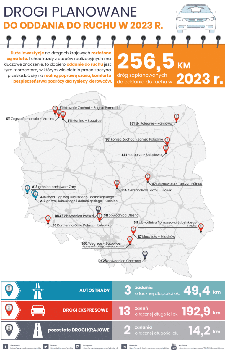 W 2023 r. planujemy oddać kierowcom łącznie blisko 260 km nowych dróg: