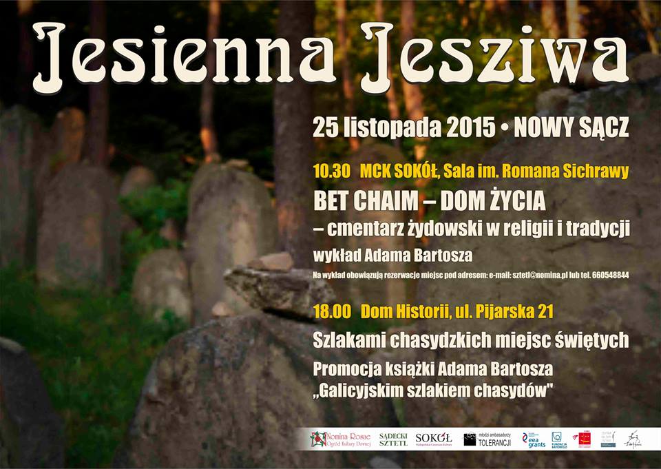 Po raz drugi mamy przyjemność zaprosić Państwa do udziału w Jesiennej Jesziwie. Tegoroczna edycja będzie poświęcona cmentarzom żydowskim. Naszym gościem będzie Adam Bartosz.