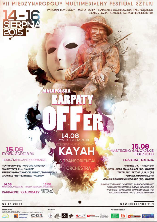Festiwal Karpaty OFFer przez swoich sześć dotychczasowych edycji konsekwentnie starał się zderzać kulturę tradycyjną z wyrosłymi na jej korzeniach współczesnymi przejawami twórczości amatorskiej i profesjonalnej. Czerpiąc z materialnego i duchowego dziedzictwa Mieszkańców Karpat dawał im możliwość nieco innego poznania swojej kultury oraz zainspirowania się jej różnorodnością. A wszystko za sprawą wyjątkowych, śmiałych i kreatywnych artystów, którzy z roku na rok prezentowali się na Festiwalu. Tym razem też tak będzie!