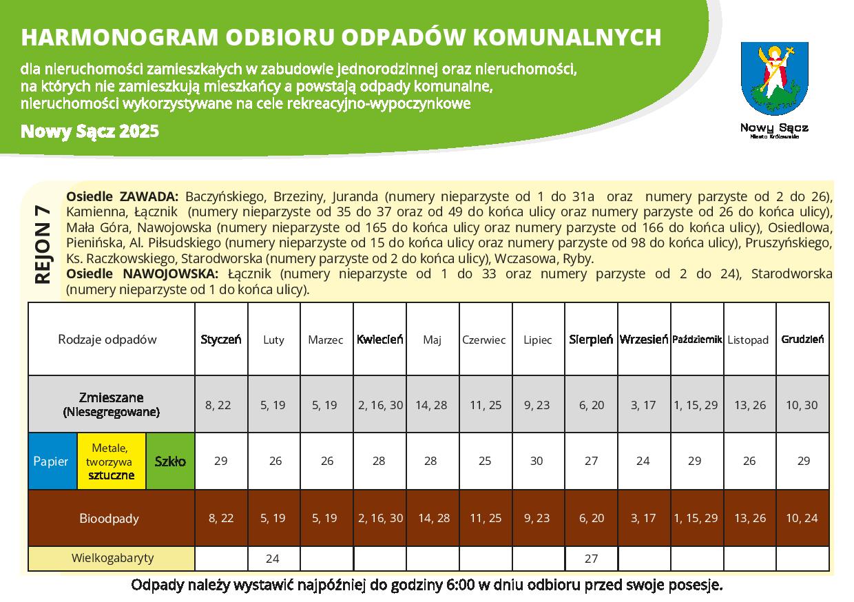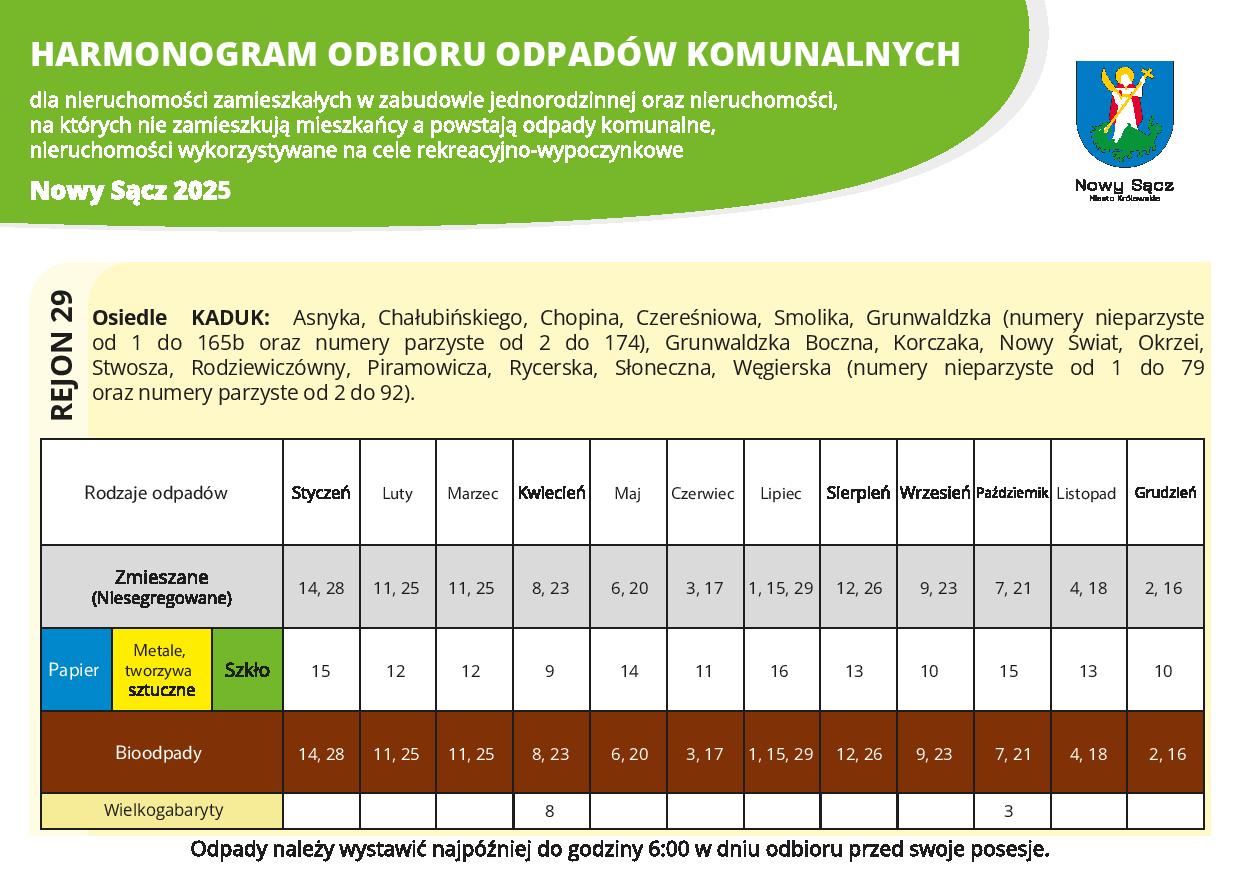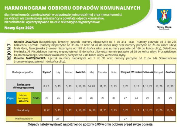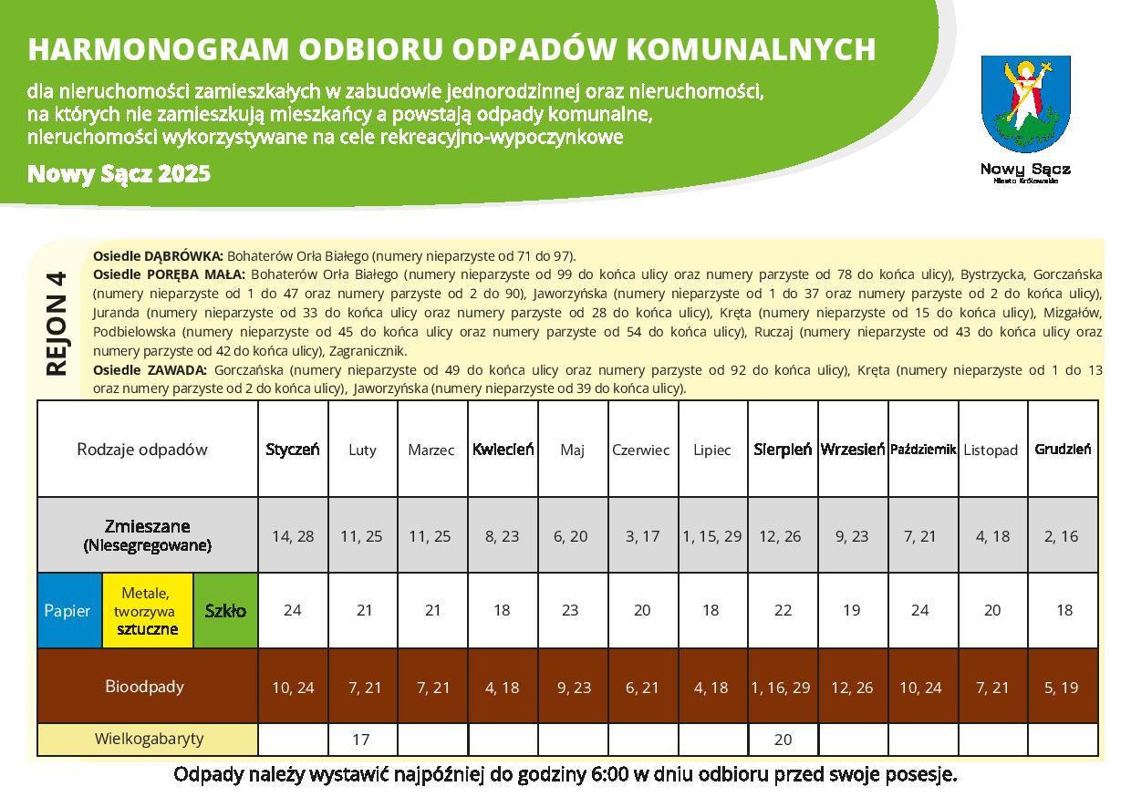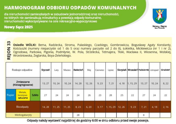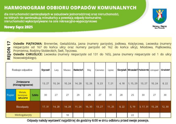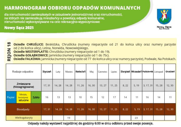 Harmonogram odbioru odpadów 2025 Nowy Sącz: