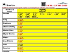 Jak informują KMŁ pierwszy pociąg z Krakowa wyruszy o godz. 4.14 i do Nowego Sącza dotrze o 7.30. Pierwszy przyspieszony pociąg z Krakowa wyjedzie o godzinie 5.44 i do Krynicy dotrze o godzinie 9:39. Ostatni pociąg wyruszy ze stolicy Małopolski o 20:18, docierając do Nowego Sącza o 23.26. Natomiast ostatni kurs na trasie Kraków-Krynica zaplanowano o godz. 16:44 (pociąg dotrze do stacji docelowej o godz. 20:36).