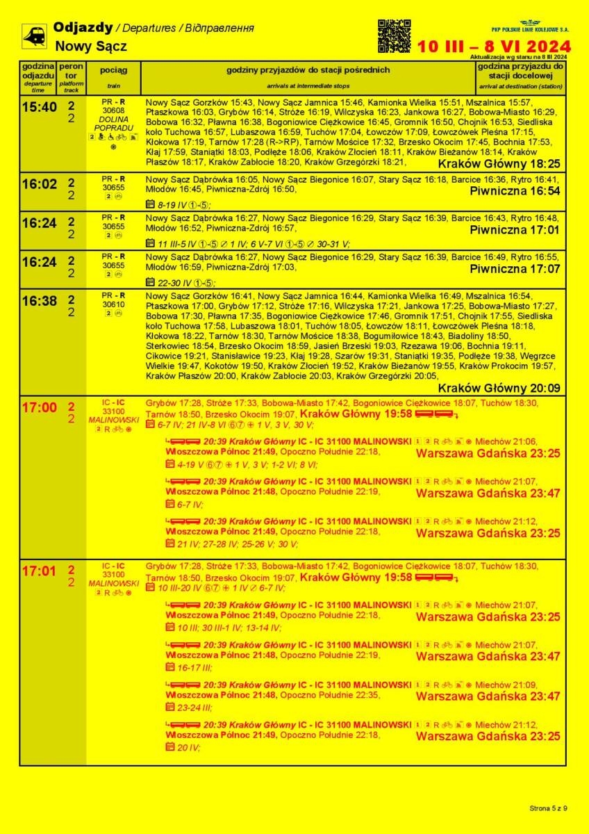 W niedzielę 10 marca wchodzi w życie korekta rozkładu jazdy pociągów. Przy tej okazji m.in. oddany zostanie do użytku drugi peron na nowym przystanku Nowy Sącz Gorzków wraz z przejściem podziemnym dla pieszych. Zmodyfikowany rozkład odjazdów ze stacji Nowy Sącz znajdziecie poniżej.