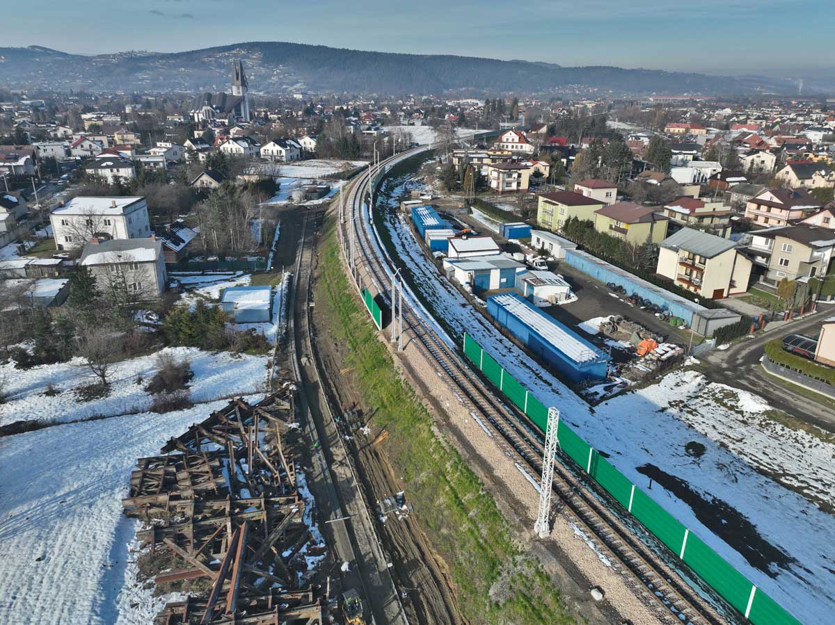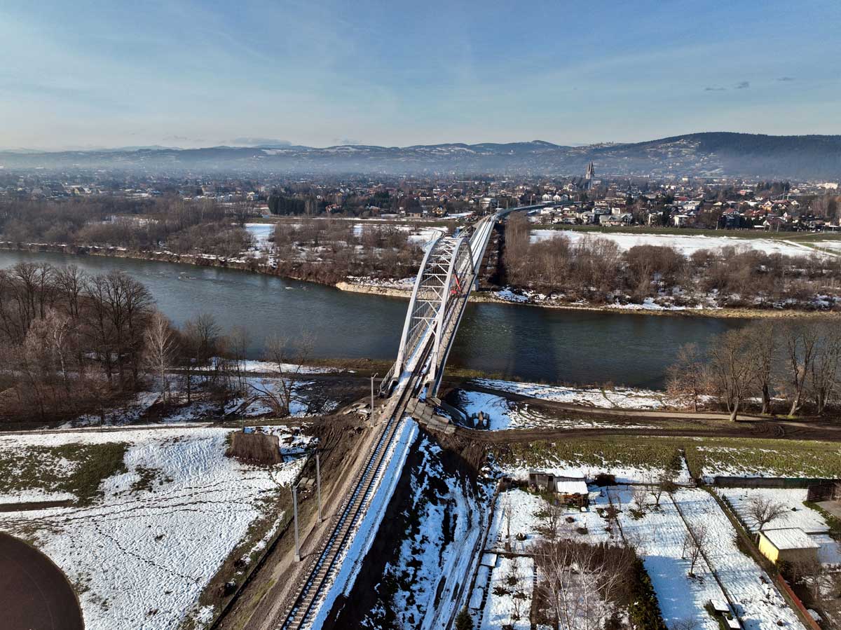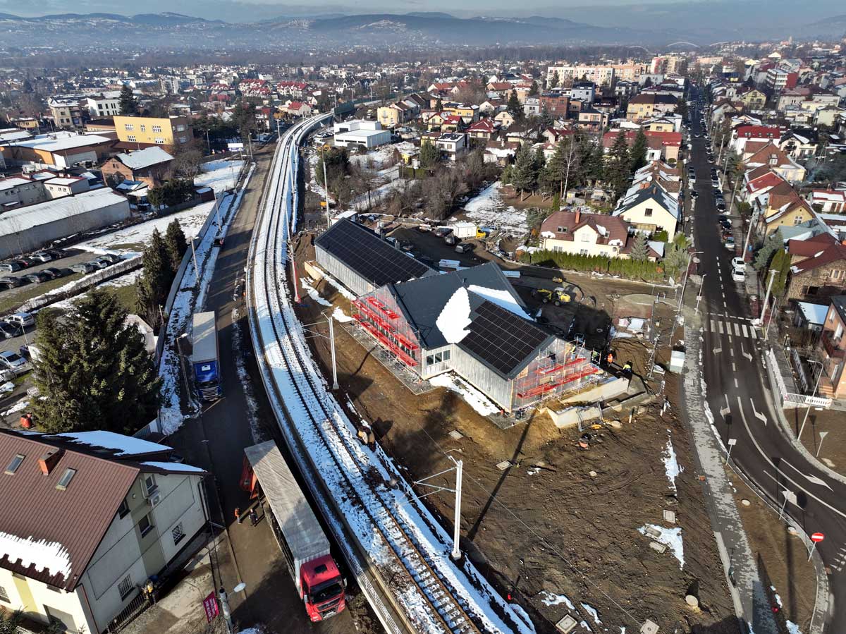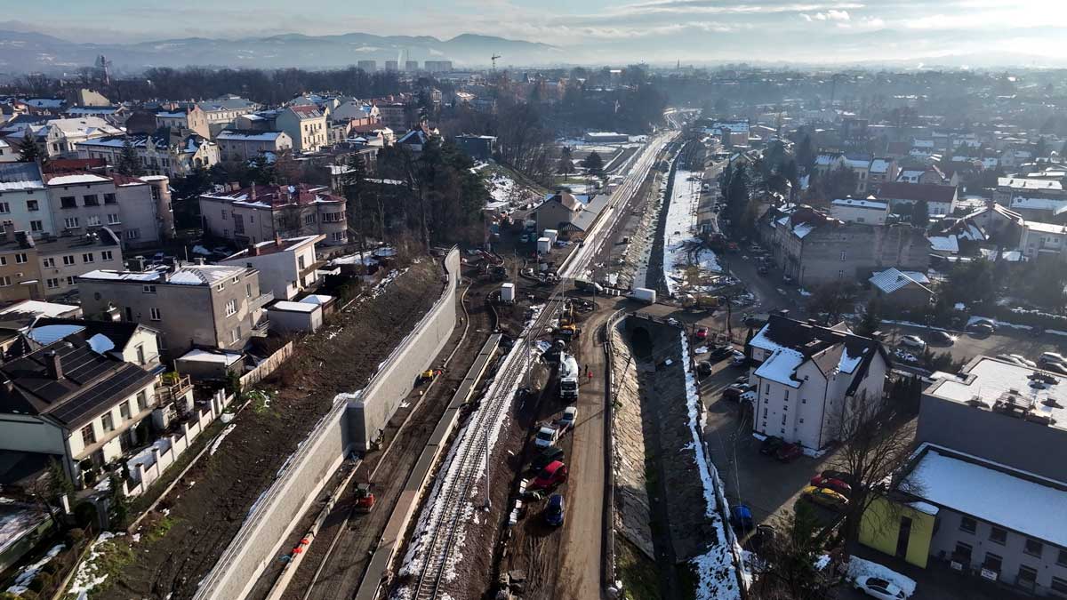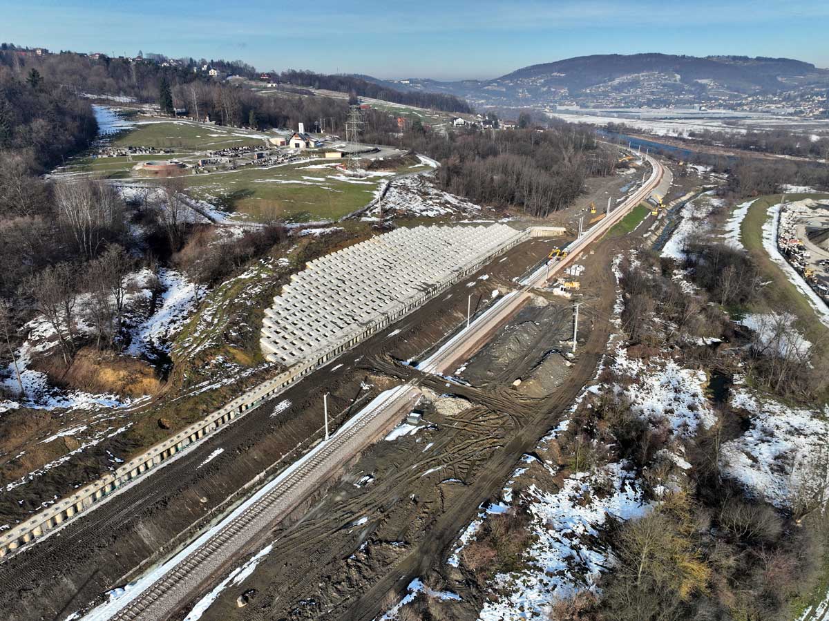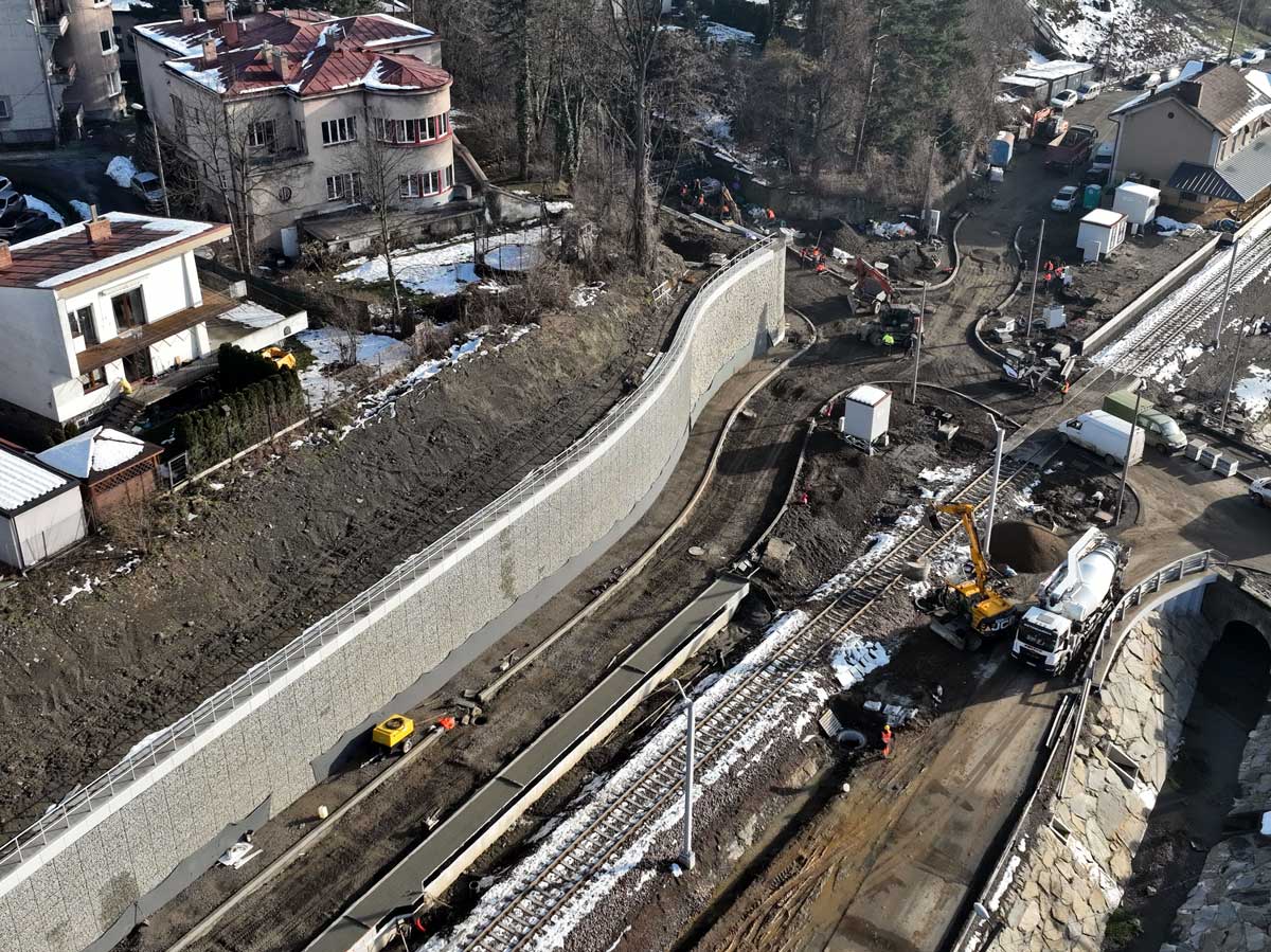 Nowe zdjęcia (z 4 grudnia) dokumentujące postęp prac modernizacyjnych na linii kolejowej między Nowym Sączem i Marcinkowicami (linia 104 do Chabówki a w przyszłości także do Krakowa). Na tym odcinku prowadzone od jesieni 2023 prace są już w fazie końcowej. Oprócz położonych nowych torów, wiaduktów i dużych prac w części drogowej zadania, teraz wykonywana jest elektryfikacja (nad torami pojawiła się już trakcja) oraz budowa Lokalnego Centrum Sterowania ruchem pociągów.