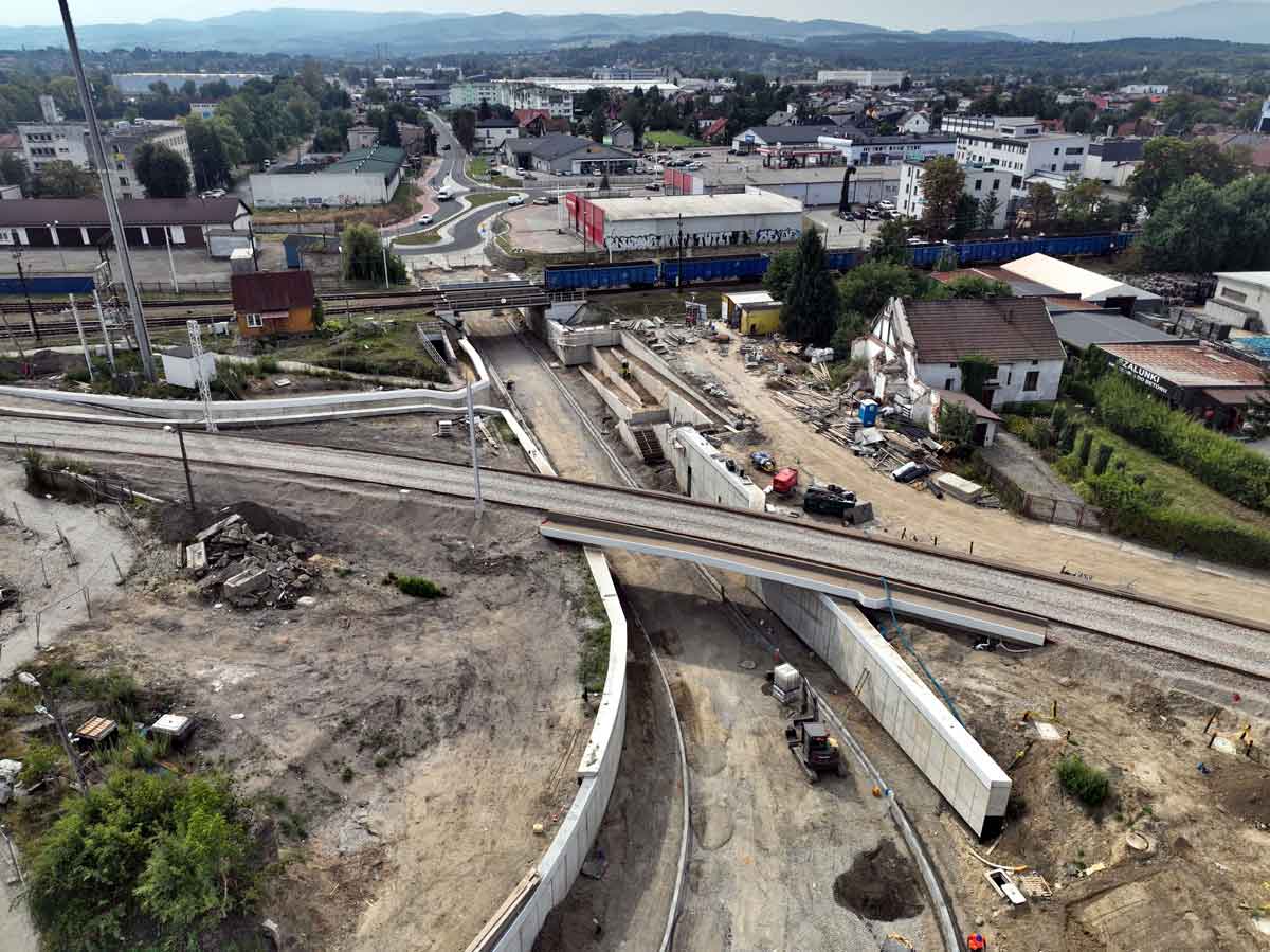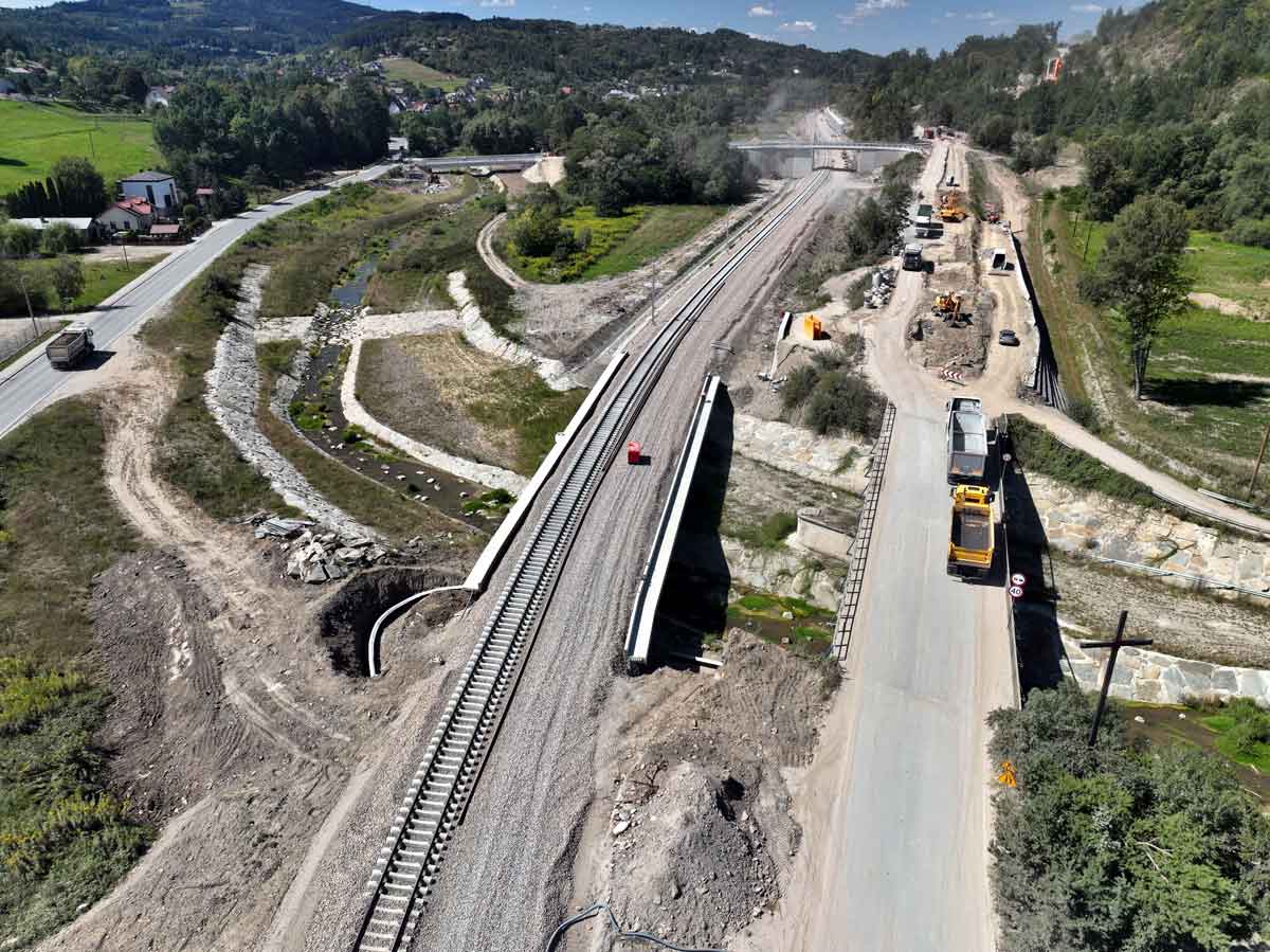 Polskie Linie Kolejowe udostępniły najnowsze zdjęcia dokumentujące postęp prac związanych z modernizacją linii kolejowej nr 104 (Nowy Sącz – Chabówka) prowadzonej w ramach projektu „Podłęże – Piekiełko”. Fotografie na tzw. odcinku A: (linia Nowy Sącz Klęczany) zrobiono 20 i 21 sierpnia 2025. Widzimy zaawansowanie robót począwszy od budowy bezkolizyjnego skrzyżowania torów z ulicami Kolejową i Zieloną, przez rejon przystanku Nowy Sącz Miasto i Nowy Sącz Chełmiec, nowy most na Dunajcu po Rdziostów i Marcinkowice.
