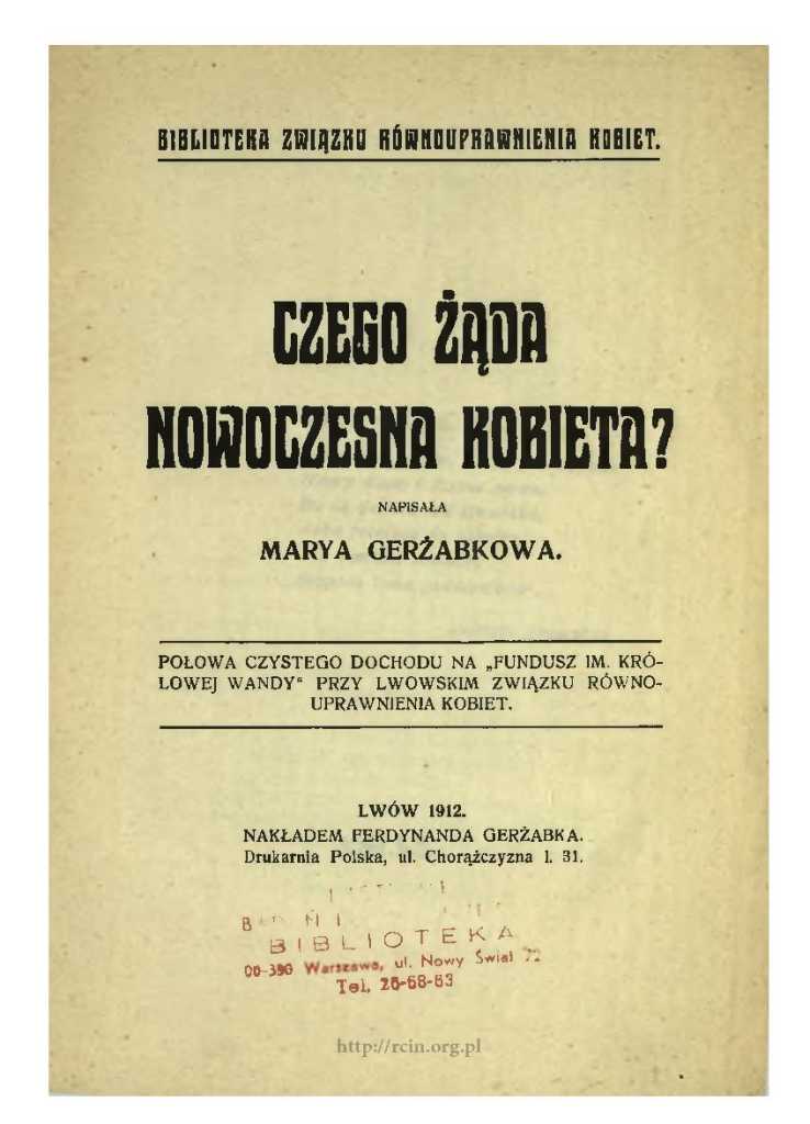 Maria Gerżabkowa już wtedy była znaną aktywistką kobiecą w Galicji. Pochodziła z szlacheckiej rodziny Łusakowskich. Jej ojciec był żołnierzem Legionu Wysockiego i został odznaczony orderem Virtuti Militari. Matka Marii była wychowawczynią dzieci samego Józefa Ignacego Kraszewskiego. Młodziutka Maria Łusakowska postanowiła pójść śladami matki i została nauczycielką. W Krakowie ukończyła seminarium nauczycielskie a potem uczyła się w Warszawie. W 1893 r. wyszła za mąż. Razem z inżynierem Ferdynandem Gerżabkiem zamieszkali w Galicji.