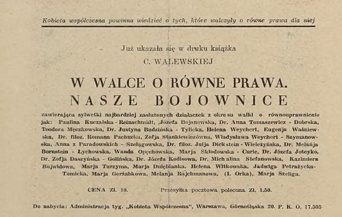 Jej działalność na polu emancypacji kobiet była imponująca. Przez całe życie założyła 23 organizacje społeczne. Wśród nich były „szkoły dla analfabetów, szwalnie, ludowe szkoły zimowe, koła uniwersytetów ludowych, czytelnie ludowe, dwa Kluby polityczne, kluby i kółka samokształcenia, Biuro porad zawodowych dla kobiet, Biuro Cz. Krzyża, oddział Ligi Kobiet w Stanisławowie, Biuro dla zaginionych jeńców, a także Sekcję Kobiecą Obrony Państwa w Nowym Sączu” – pisała Cecylia Walewska w „Kobiecie współczesnej” w 1929 roku.