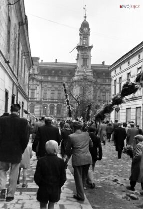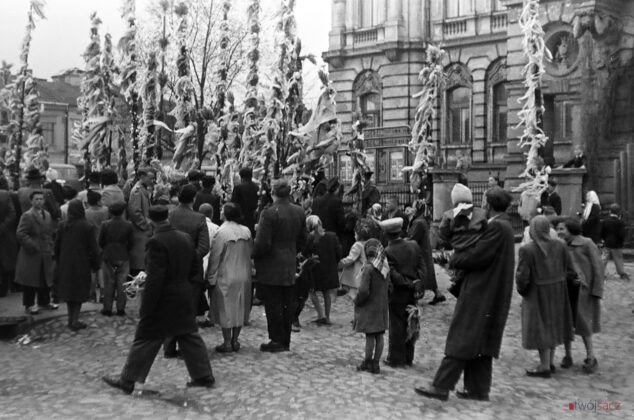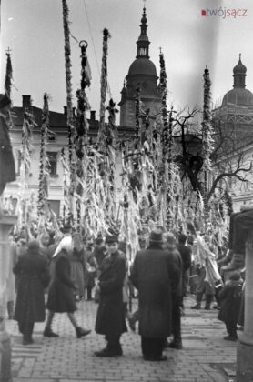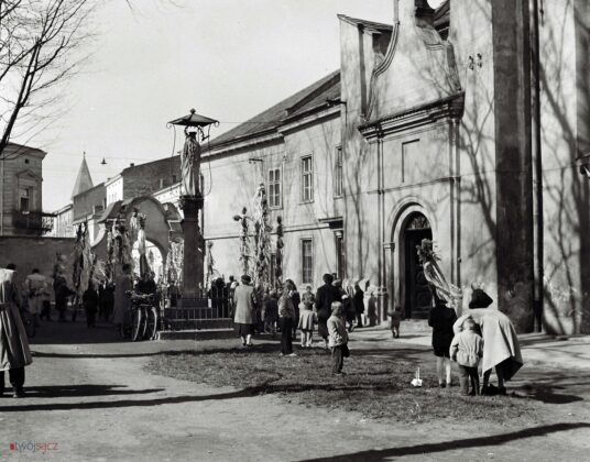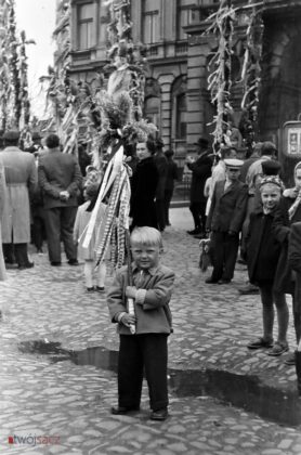 Niedziela Palmowa w Kościele katolickim kończy okres Wielkiego Postu i rozpoczyna Wielki Tydzień – okres upamiętniający ukrzyżowanie i śmierć Chrystusa na Krzyżu. Nazwa tego dnia pochodzi od wprowadzonego w XI wieku zwyczaju święcenia palm. Mimo walki władz PRL z Kościołem, wiarą, obrzędami religijnymi i niektórymi tradycjami, nie udało się zakazać manifestacyjnego obchodzenia Niedzieli Palmowej czy np. Bożego Ciała co możemy zaobserwować na tych unikalnych fotografiach.
