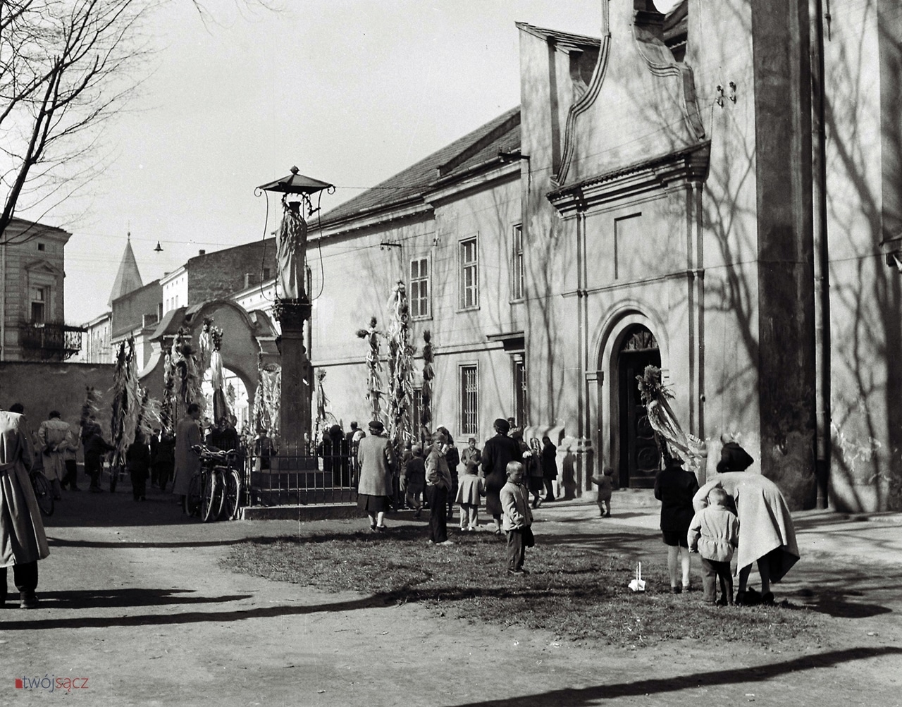 Te zdjęcia publikowane są po raz pierwszy – zostały zrobione przez nieznanego nam fotografa (lub fotografów) na nowosądeckim Rynku, przy kościołach: Jezuitów i św. Małgorzaty oraz na ulicy Kościelnej (dziś Wyszyńskiego). Jesteśmy niemal pewni, że zdjęcia pochodzą z 1958 (Niedziela Palmowa wypadła 30 marca) oraz 1959 roku (22 marca), choć niewykluczone, że niektóre ujęcia zrobiono także w 1957 lub 1960 roku.