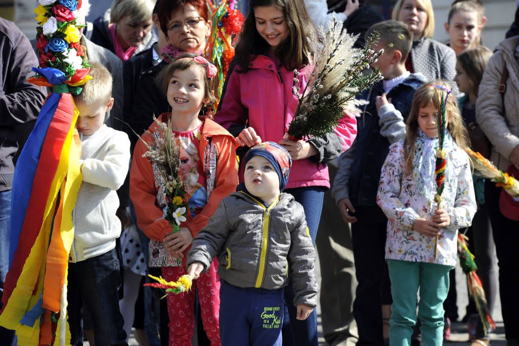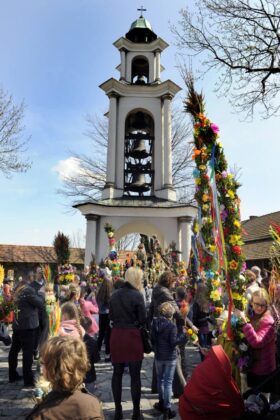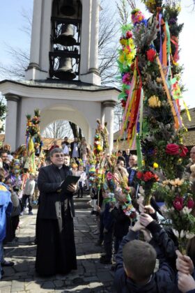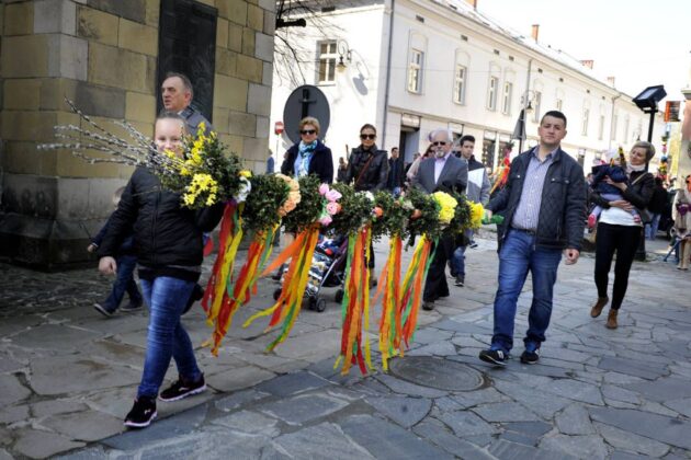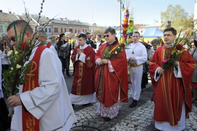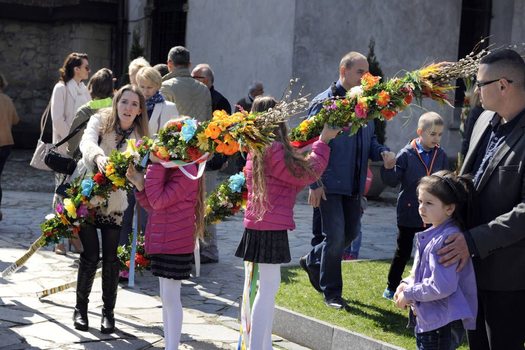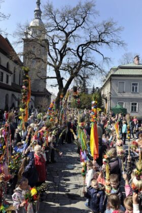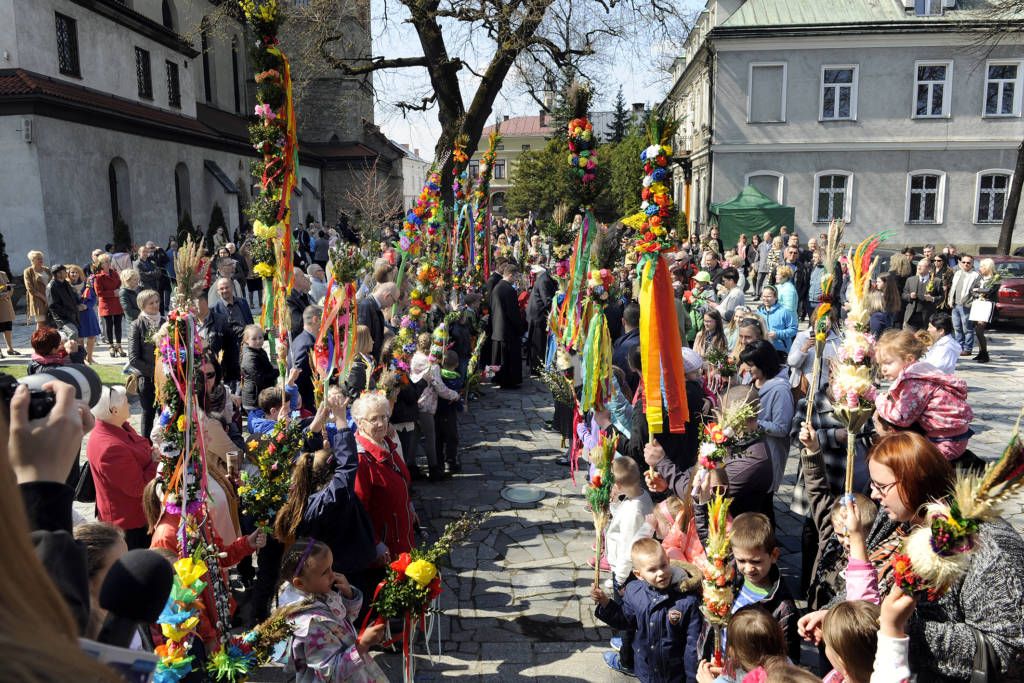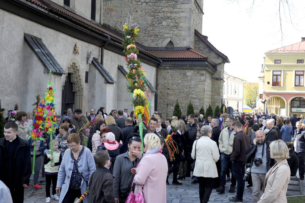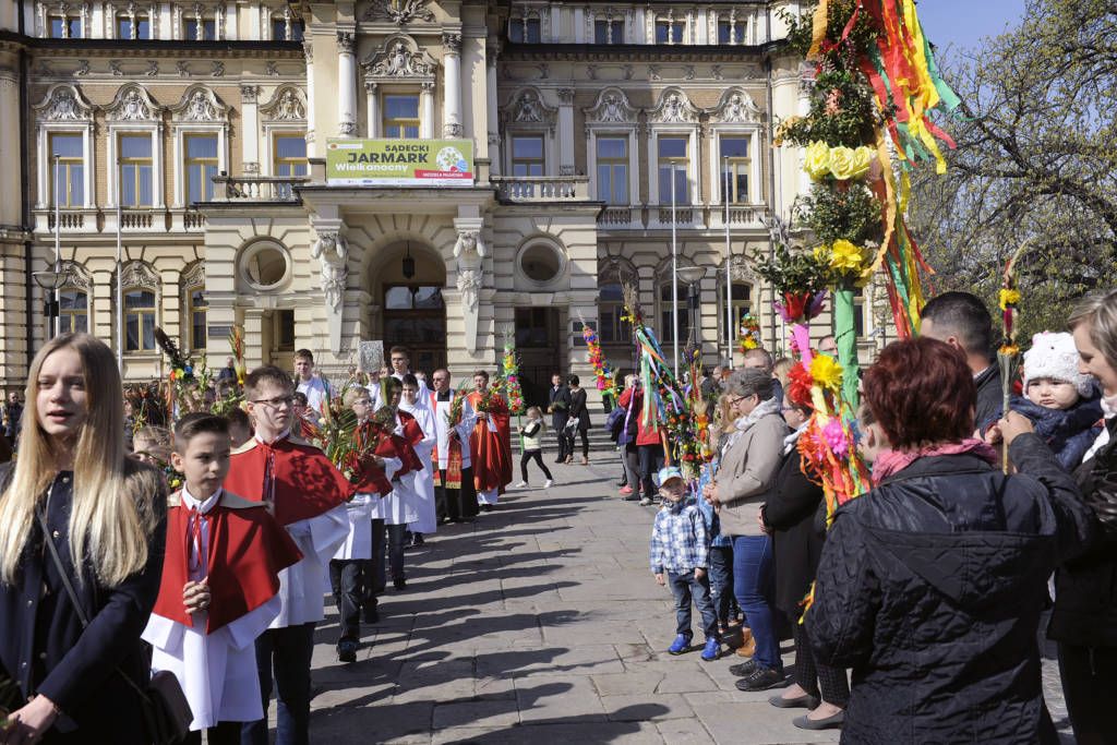 9 kwietnia 2017. Obchody Niedzieli Palmowej: poświęcenie palm na sądeckim Rynku i procesja do Bazyliki św. Małgorzaty. Ponadto na zdjęciach konkurs palm oraz kiermasze wielkanocne na Rynku i w Miasteczku Galicyjskim. Fot. Janusz Miczek / Twój Sącz