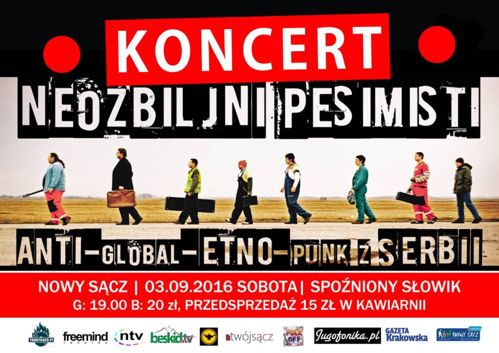 Określający się jako AntiGlobalEtnoPunk zespół „Neozbiljni pesimisti” z Serbii wystąpi w sobotę 3 września w kawiarni Spóźniony Słowik na sądeckich Plantach.