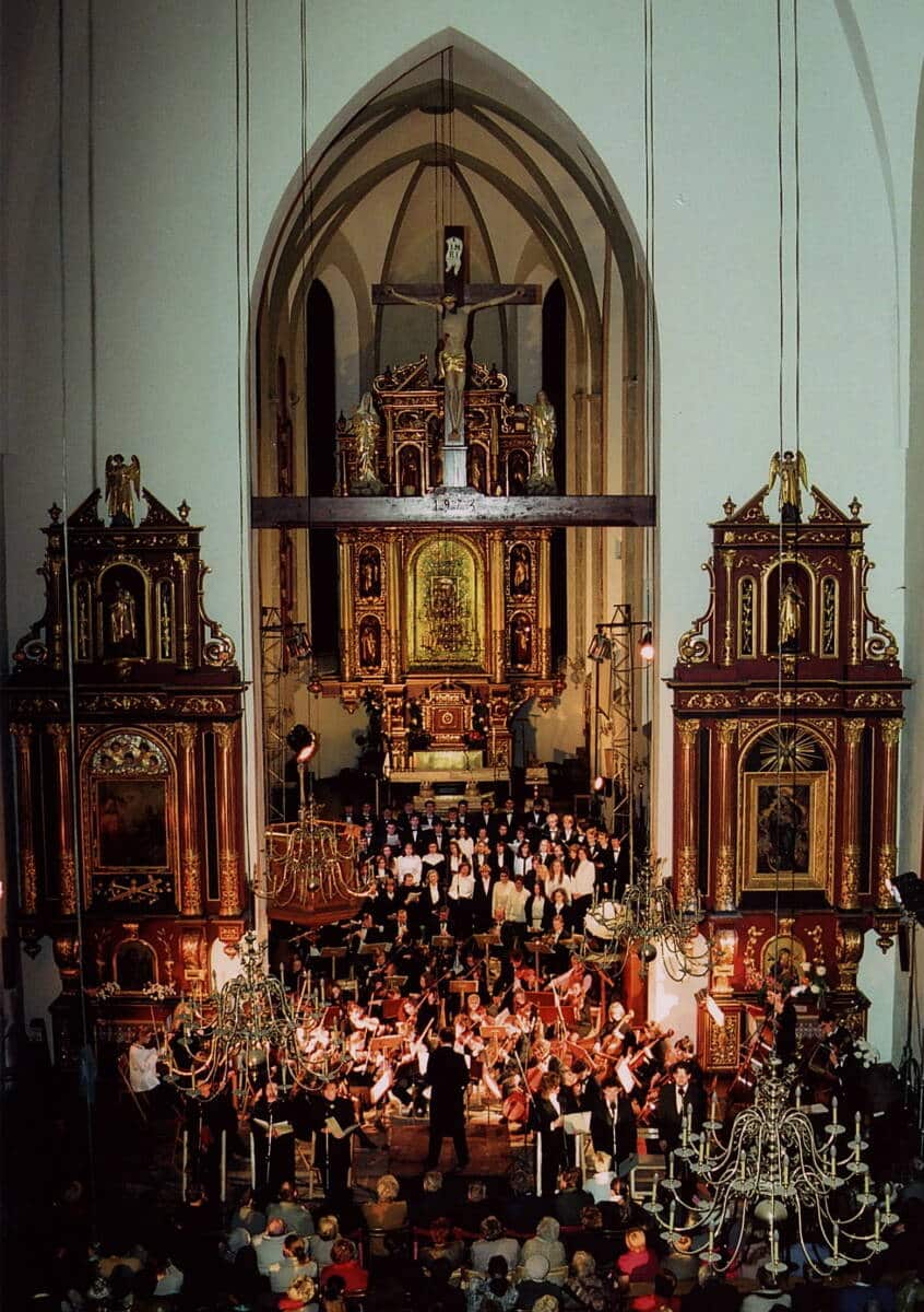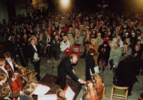 Zdjęcia z 8 listopada 1992 roku z Bazyliki św. Małgorzaty, gdzie przedstawiono „Nieszpory ludźmierskie” – oratorium Jana Kantego Pawluśkiewicza do słów Leszka Aleksandra Moczulskiego. Koncert był jednym z ważniejszych wydarzeń odbywających się w ramach obchodów 700-lecia Nowego Sącza. Autorem fotografii jest Sylwester Adamczyk, dzięki którego uprzejmości możemy je opublikować.