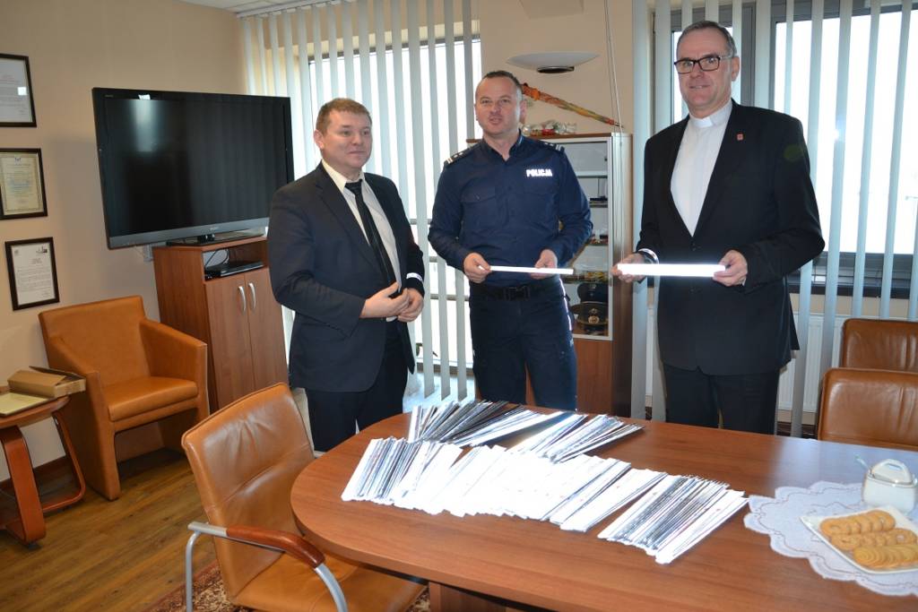 Komendant Miejski Policji w Nowym Sączu już po raz czwarty zainicjował wspólną akcję z Caritas Diecezji Tarnowskiej. 5 grudnia br. w trakcie wizyty w sądeckiej komendzie ks. Ryszard Podstołowicz – Dyrektor Caritas Diecezji Tarnowskiej oraz Jerzy Pikul – Sekretarz Zarządu Caritas Diecezji Tarnowskiej przekazali na ręce komendanta – mł. insp. Jarosława Tokarczyka 2 tyś. elementów odblaskowych. Policjanci rozdawać będą odblaskowe opaski niechronionym uczestnikom ruchu drogowego, szczególnie w miejscach gdzie często dochodzi do wypadków drogowych z udziałem pieszych.