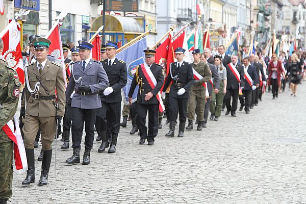 Sądeckie obchody rozpoczęła msza święta w intencji Ojczyzny odprawiona w bazylice kolegiackiej św. Małgorzaty. Przewodniczyli jej proboszczowie sądeckich parafii, razem z ks. dr Jerzym Jurkiewiczem, prepozytem Kapituły Kolegiackiej w Nowym Sączu i ks. ppłk Andrzejem Gutem, kapelanem Ośrodka Wsparcia Karpackiego oddziału Straży Granicznej. Następnie przedstawiciele parlamentarzystów, władze miasta i powiatu, samorządowcy, przedstawiciele służb mundurowych, organizacji, szkół i instytucji przemaszerowali ulicami św. Ducha, Lwowską, Rynkiem i ul. Piotra Skargi na Plac 3. Maja, gdzie pod pomnikiem Stanisława Małachowskiego odbyły się dalsze uroczystości.