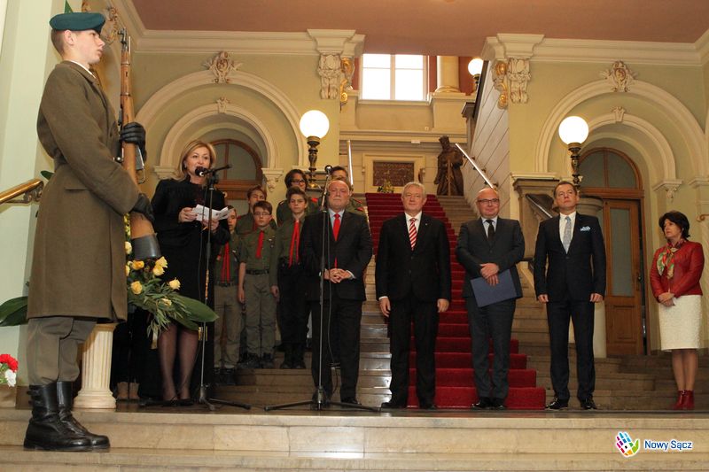 Miejskie obchody Święta Niepodległości w dniu 11 listopada 2016 rozpoczęto od złożenia kwiatów pod tablicą upamiętniającą pobyt Józefa Piłsudskiego (na rogu ulic Dunajewskiego i Szwedzkiej). W ratuszu odsłonięto tablicę 100-lecie nadania późniejszemu marszałkowi Polski Józefowi Piłsudskiemu honorowego obywatelstwa Nowego Sącza.