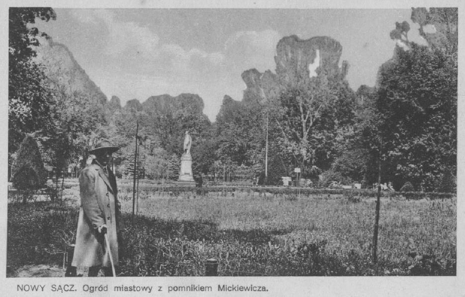 Park w XIX wieku był popularnym miejscem spotkań Sądeczan. Odbywały się tutaj różne zabawy i koncerty, jak choćby orkiestry „Harmonia”. Znajdowały się tam cztery klomby, a całość miała budowę kwaterową. Po środku stała altana, gdzie można było kupić napoje. Po postawieniu w parku pomnika Mickiewicza (1898 r.) ogród zaczęto nazywać Parkiem Mickiewicza. Nazwa dziś zupełnie zapomniana.
