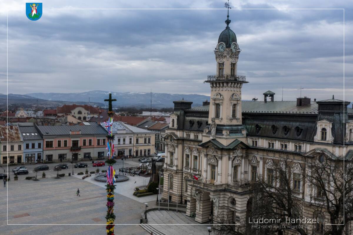 Jak co roku na nowosądeckim rynku stanęła palma wielkanocna. Ma niemal 30 metrów wysokości, waży 1,5 tony i zdobi ją 5 tysięcy kwiatów oraz wstążek o łącznej długości 500 m. Jej wykonanie i ustawienie zajęło 2 tygodnie i kosztowało 20 tys. zł.
