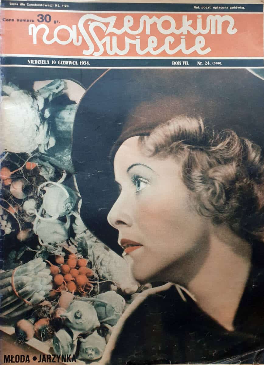 Tygodnik Na Szerokim Świecie wydawany był w latach 1928 – 1939. Należał do krakowskiego koncernu prasowego i wydawnictwa Ilustrowany Kurier Codzienny i był kierowany przez Mariana Dąbrowskiego – prezesa grupy i redaktora naczelnego IKC. Jak podaje Wikipedia, Na Szerokim Świecie zawierał informacje bieżące (rubryka „Tydzień zdarzeń”, później „Radjogram tygodnia”), powieści w odcinkach, humor (w tym karykatury polityczne) oraz dział rozrywki. W latach trzydziestych tygodnik zamieszczał ilustrowane relacje z podróży Kazimierza Nowaka w Afryce. Prowadzono także konkurs „Polskie dziecko”, w którym nagrody sponsorowane były przez PKO. Publikowano także serie fotografii kobiet zatytułowanych „Typy urody kobiet w Polsce”.