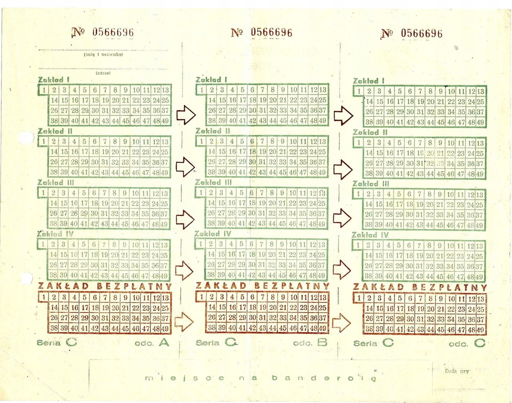 Kupony ze skreślonymi liczbami składało się głównie w kioskach „Ruch”. Jeden odcinek z naklejoną specjalną banderolą otrzymywał nadawca, dwa pozostałe odcinki były wysyłane do centrali do sprawdzenia. Wygrane wypłacano już od 2 tranie skreślonych liczb, były też nagrody rzeczowe. Jak deklarowano, dochody ze sprzedaży kuponów miały zasilać m.in. inwestycje sportowe i ochronę zabytków.