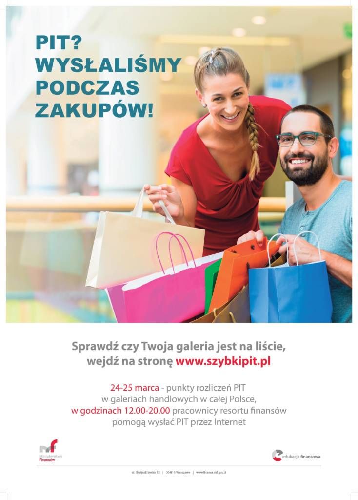 W piątek i sobotę ( 24 i 25 marca) w galeriach handlowych w całym kraju pracownicy urzędów skarbowych pomogą wypełnić PIT-a i wysłać go elektronicznie. W Nowym Sączu akcja „Szybki PIT przeprowadzona będzie w Galerii Sandecja (ul. Wegierska 170).