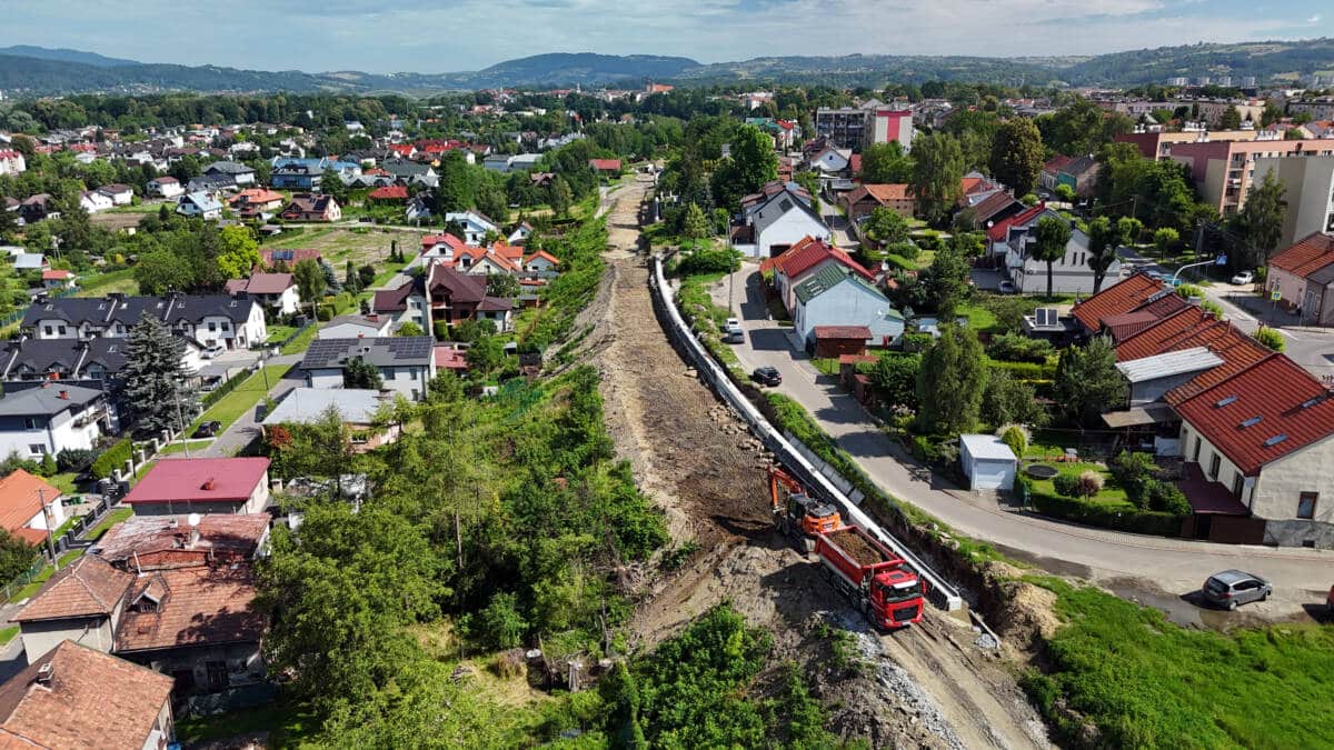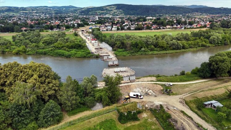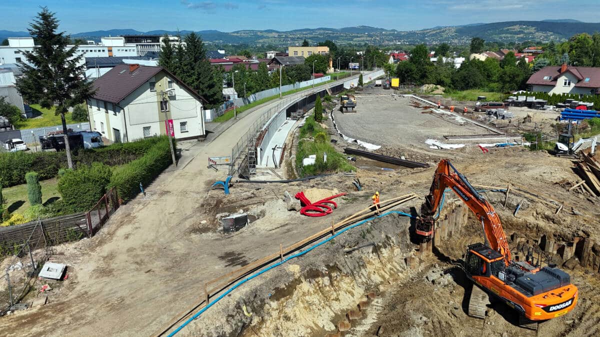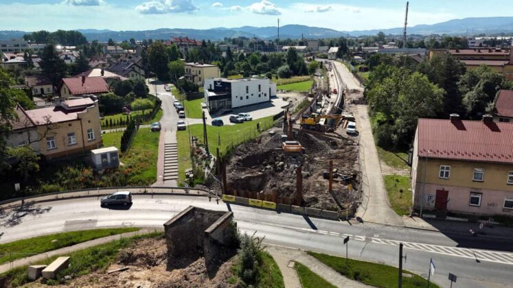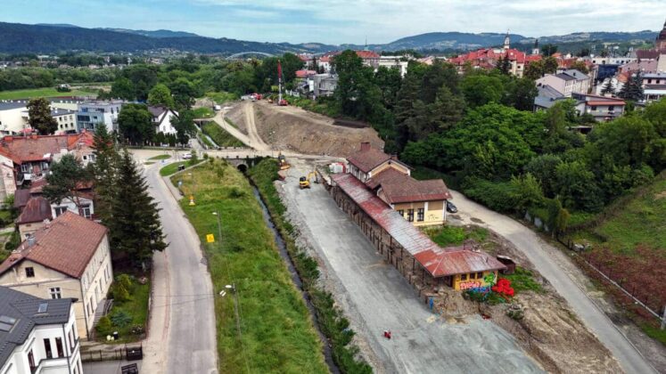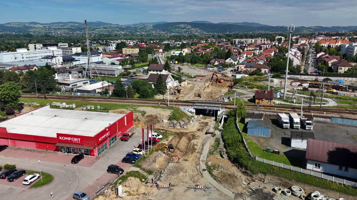 Najnowsze zdjęcia (z 18 czerwca 2024) prac wykonywanych na terenie miasta w związku z modernizacją linii kolejowej Nowy Sącz – Chabówka. Roboty prowadzone są w ramach przebudowy torów i trakcji a także infrastruktury drogowej. Możemy zobaczyć stan zaawansowania robót w rejonie ul. Kolejowej, Asnyka, Węgierskiej, Mickiewicza, Kościuszki, budowy mostu na Dunajcu oraz ul. Krakowskiej. Fot. Piotr Hamarnik/PKP-PLK