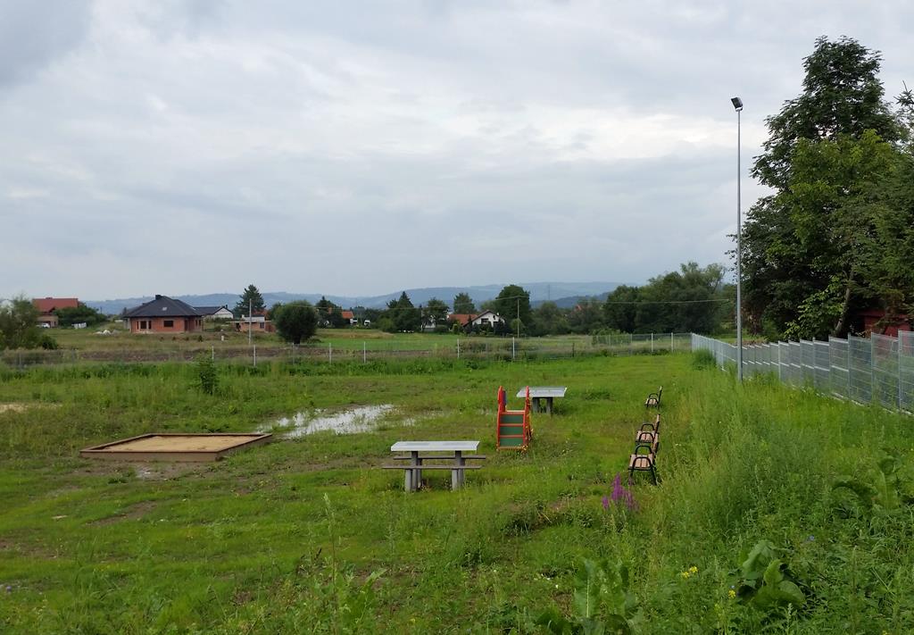 Szumnie nazwane „Boisko wielofunkcyjne z placem zabaw” przy ul. Poręba Mała” po zakończeniu wyposażenia w skromny sprzęt na razie nie zostanie oddane do użytku. Najpierw trzeba poczekać na wykonanie prac, których wcześniej nie przewidziano – m.in. na odwodnienie terenu.
