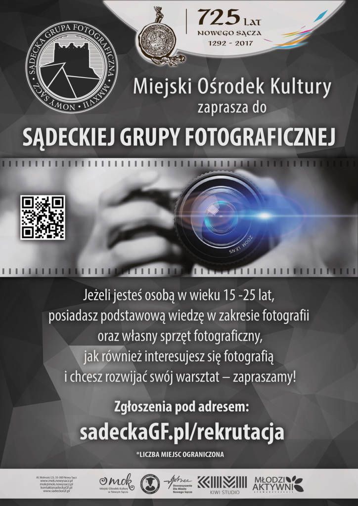 Jeśli jesteś osobą w wieku 15-25 lat, posiadasz podstawową wiedzę w zakresie fotografii, oraz własny sprzęt fotograficzny, jak również interesujesz się fotografią i chcesz rozwijać swój warsztat, zapraszamy do skorzystania z formularza rekrutacyjnego pod adresem www.sadeckaGF.pl/rekrutacja. Na tej stronie znajdziesz również informacje o samej grupie i jej założeniach.