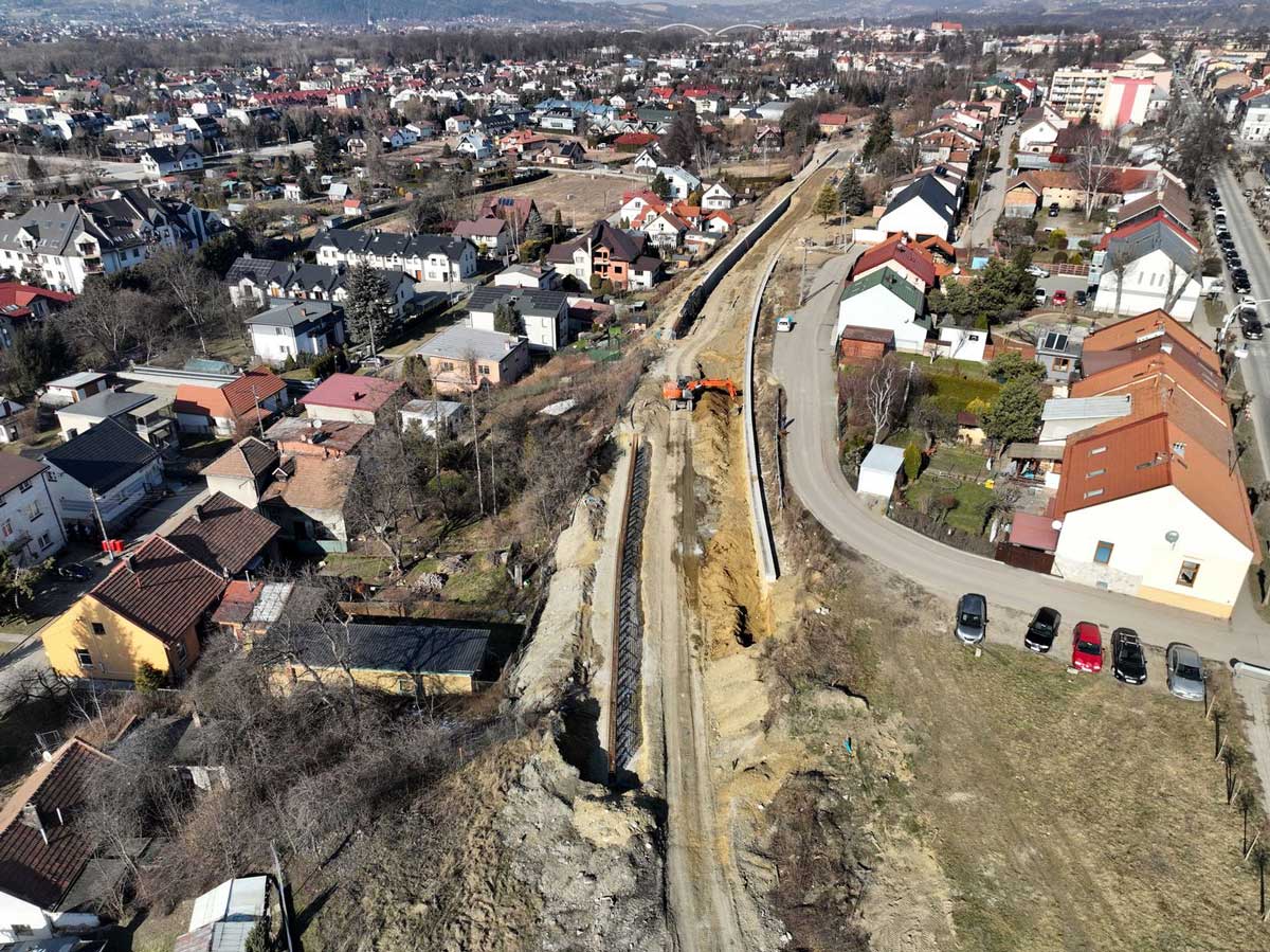 PKP Polskie Linie Kolejowe, które prowadzą modernizację linii Nowy Sącz – Chabówka zakładają, że wszystkie główne prace prowadzone w naszym mieście będą skończone w tym roku. Zobaczcie, jak aktualnie wygląda zaawansowanie robót w kilku miejscach Nowego Sącza oraz w Marcinkowicach i Klęczanach. To 16-kilometrowy tzw. odcinek E modernizowanej linii 104 do Chabówki, na którym wartość robót sięga miliarda złotych. Zdjęcia z 21 lutego 2025, fot. Krzysztof Dzidek/PKP PLK.