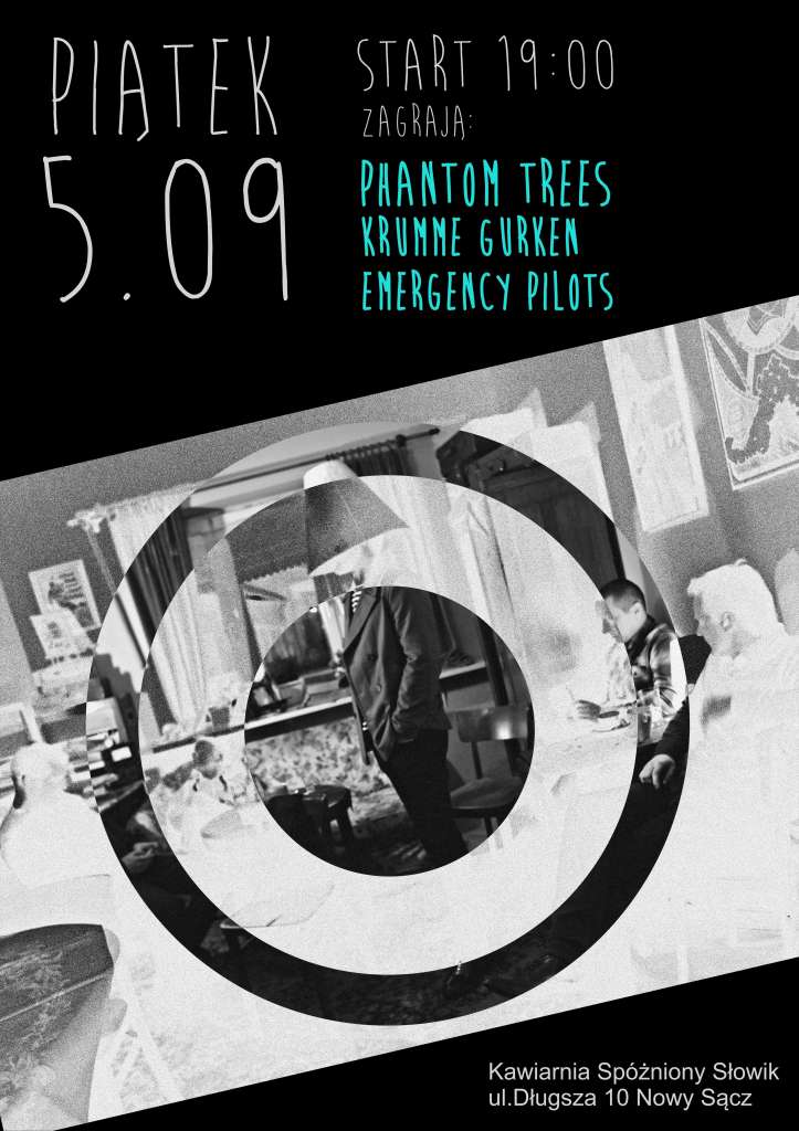 Koncert w Spóźnionym Słowiku będzie drugim w historii Phantom Trees – zespół gra swój debiut na żywo dzień wcześniej w Nowym Targu. W Nowym Sączu wystąpią z nim także Krumme Gurken oraz Emergency Pilots. Początek koncertu o godz. 19. Bilety do nabycia na miejscu w cenie 10 zł.