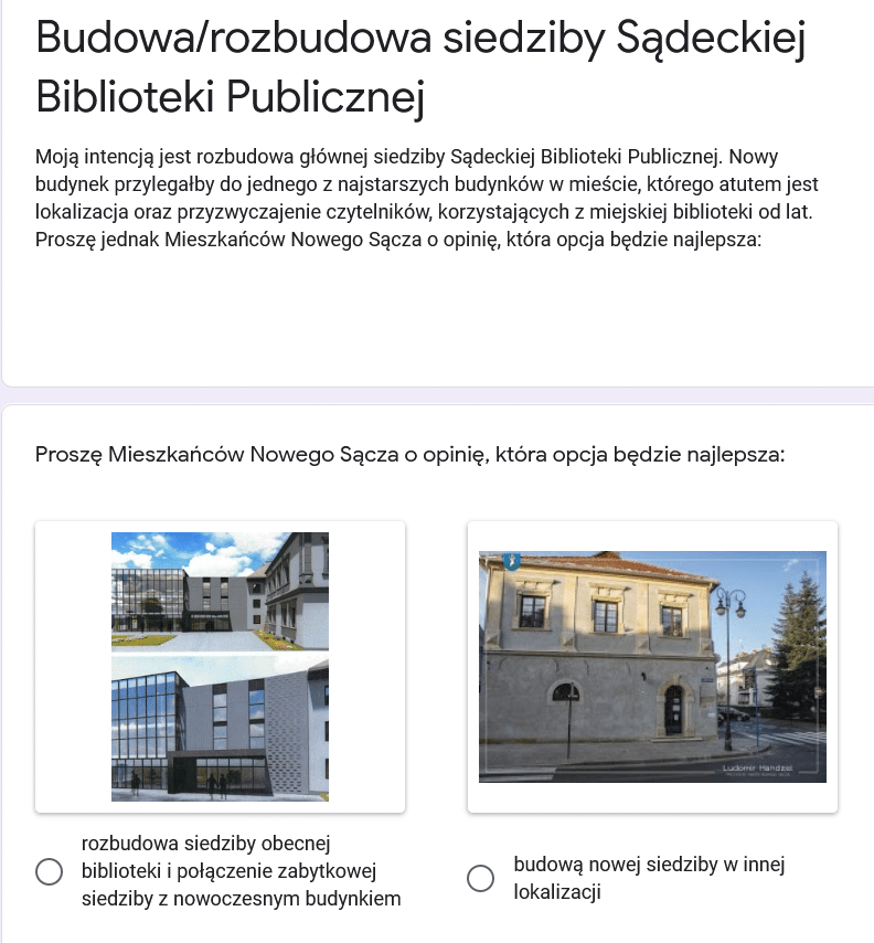 Pomysł zaprezentował prezydent w czasie cotygodniowego spotkania ze swoimi zwolennikami. – Pytanie, czy nie czas pomyśleć o rozbudowie Sądeckiej Biblioteki Publicznej przy ul. Franciszkańskiej. Ten pomysł który państwu prezentuje jest odważny, bo łączy budynek historyczny z nowoczesną architekturą placu, który znajduje się za biblioteką. Jestem bardzo ciekawy państwa opinii – mówił Ludomir Handzel prezentując kilka poglądowych grafik.