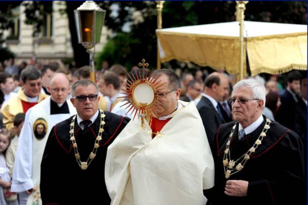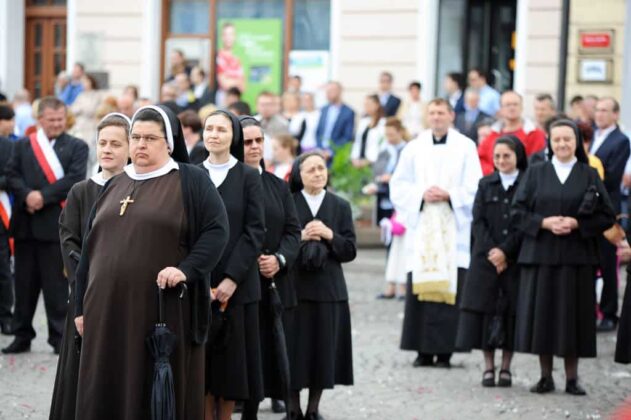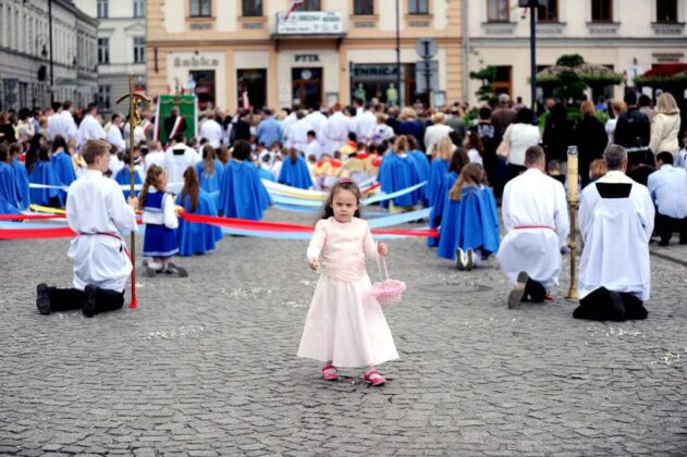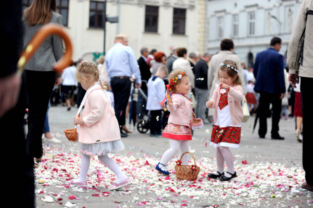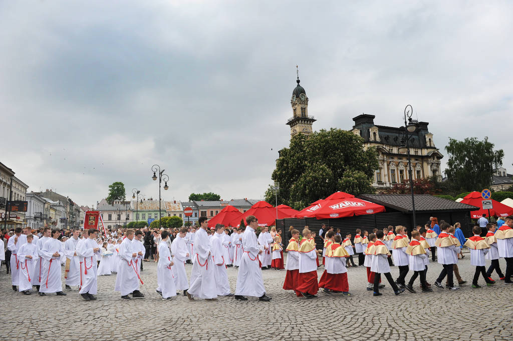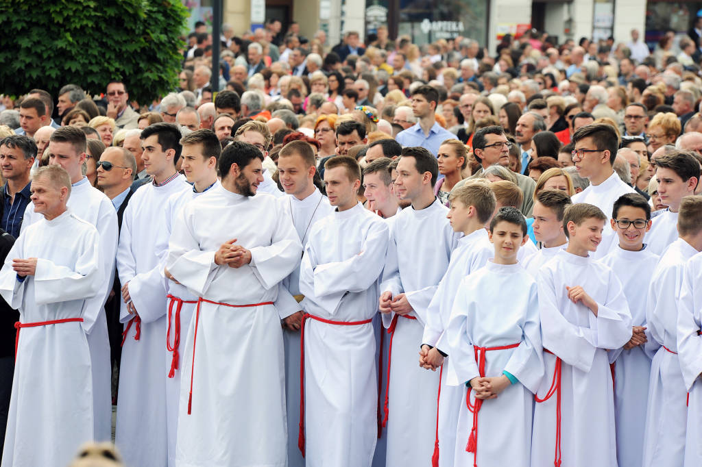 Kilka tysięcy mieszkańców miasta wzięło udział w uroczystościach Bożego Ciała, które rozpoczęły się Mszą Świętą w Bazylice św. Małgorzaty. Eucharystię celebrowali Prepozyt Kapituły Kolegiackiej ks. dr Jerzy Jurkiewicz, Proboszcz Parafii św. Kazimierza ks. dr Jan Siedlarz i Proboszcz Parafii Ducha Świętego o. Józef Polak SJ.
