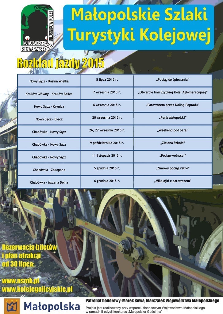 Projekt „Małopolskie Szlaki Turystyki Kolejowej” ma na celu stworzenie atrakcji turystycznej obejmujące przejazdy historycznym taborem kolejowym ze Skansenu Taboru Kolejowego w Chabówce wraz z atrakcjami na pokładzie pociągów oraz podczas postojów na poszczególnych stacjach i przystankach.
